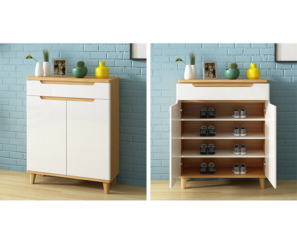 Small Shoes Cabinet Wooden Storage Cupboard Sideboard Rack Stand 2 Doors Drawer
