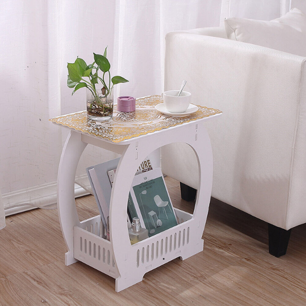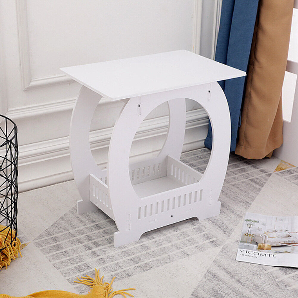 Small Side End Coffee Table Beside lamp Stand Nightstand Storage Shelf White