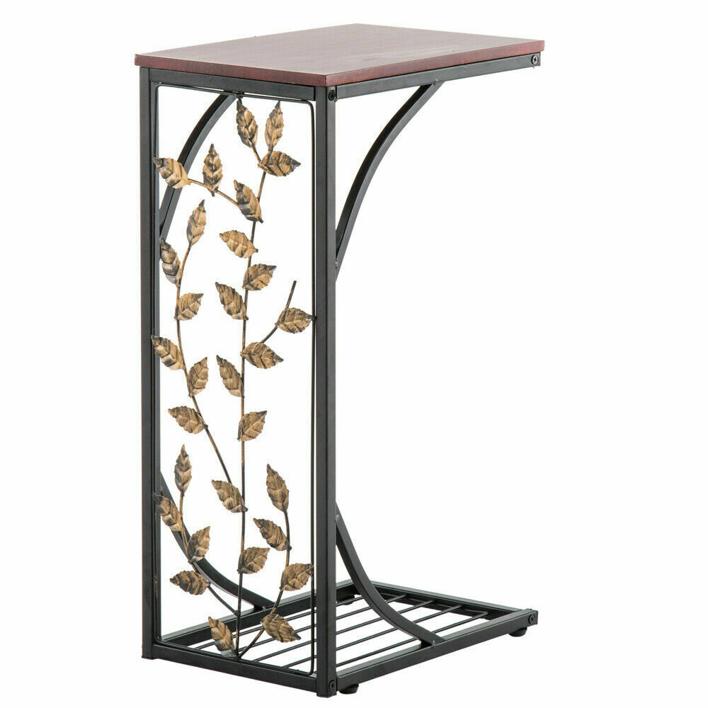 Small Sofa Side Table C Shaped Coffee End Table Living Room/Bedroom MDF Metal