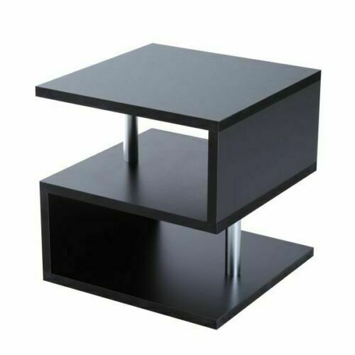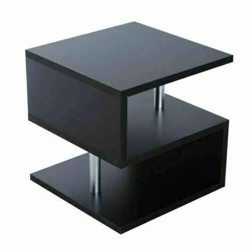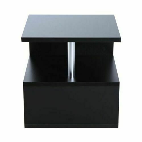 Small Square Coffee Table Black Modern 2 Tier Side Table Bedside Nightstand Unit