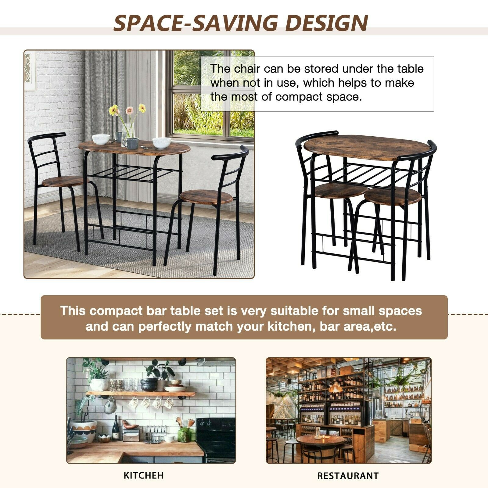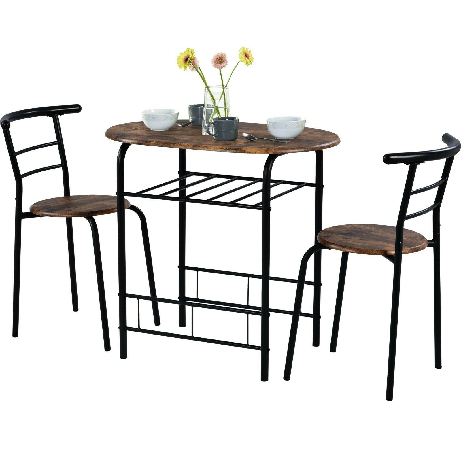 Small Table And 2 Chairs Breakfast Bar Kitchen Dining Room Furniture Set Brown