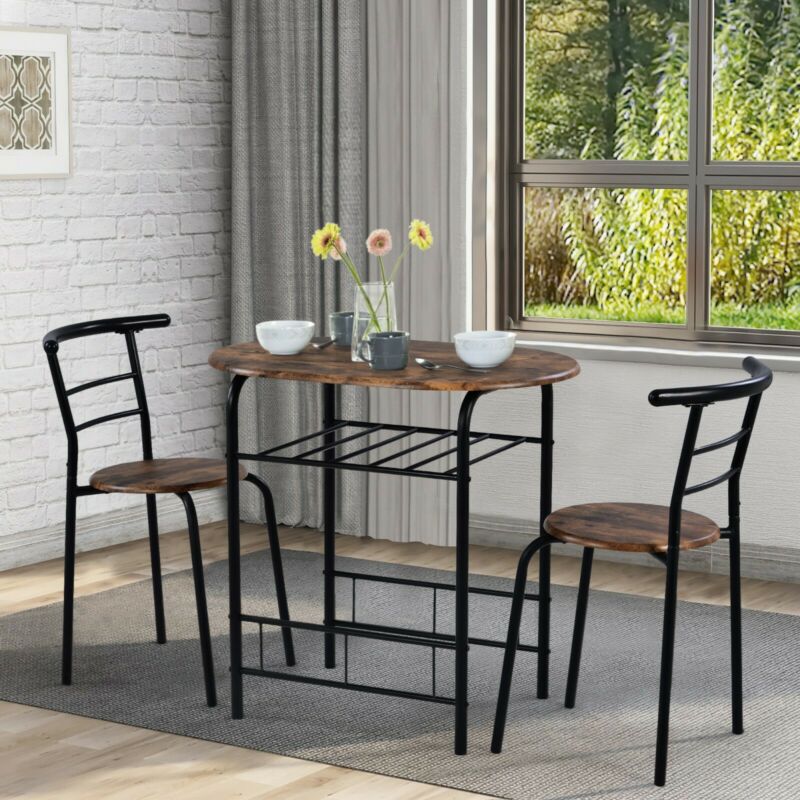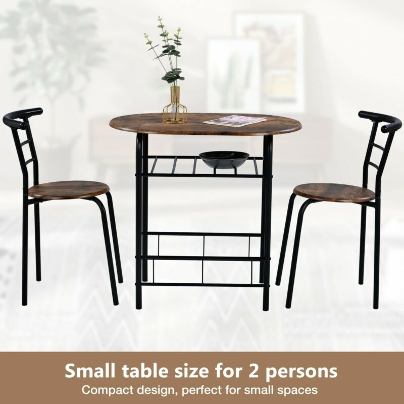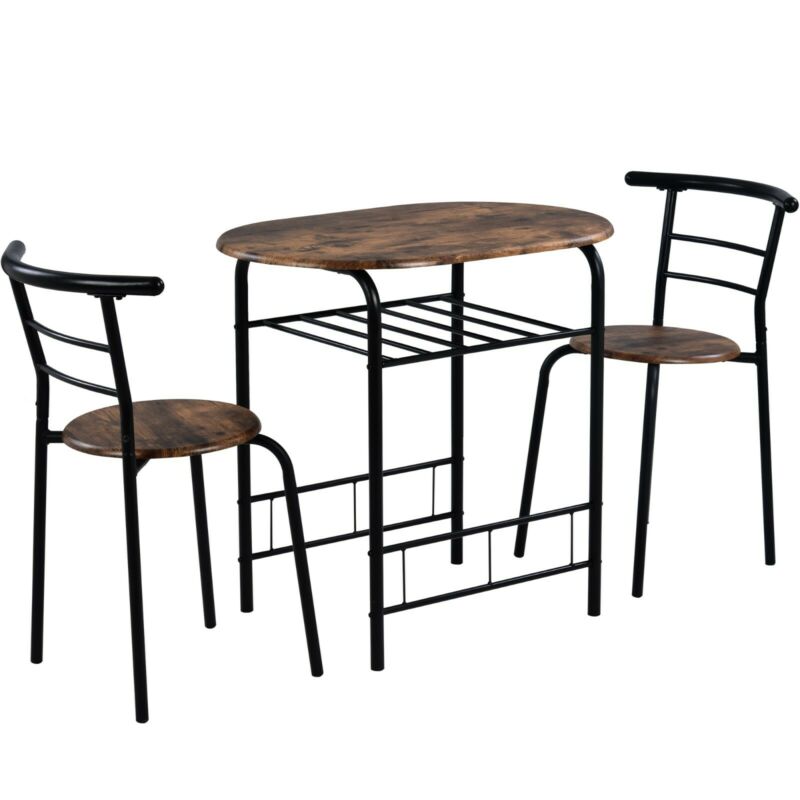 Small Table And 2 Chairs Breakfast Bar Kitchen Dining Room Furniture Set Brown