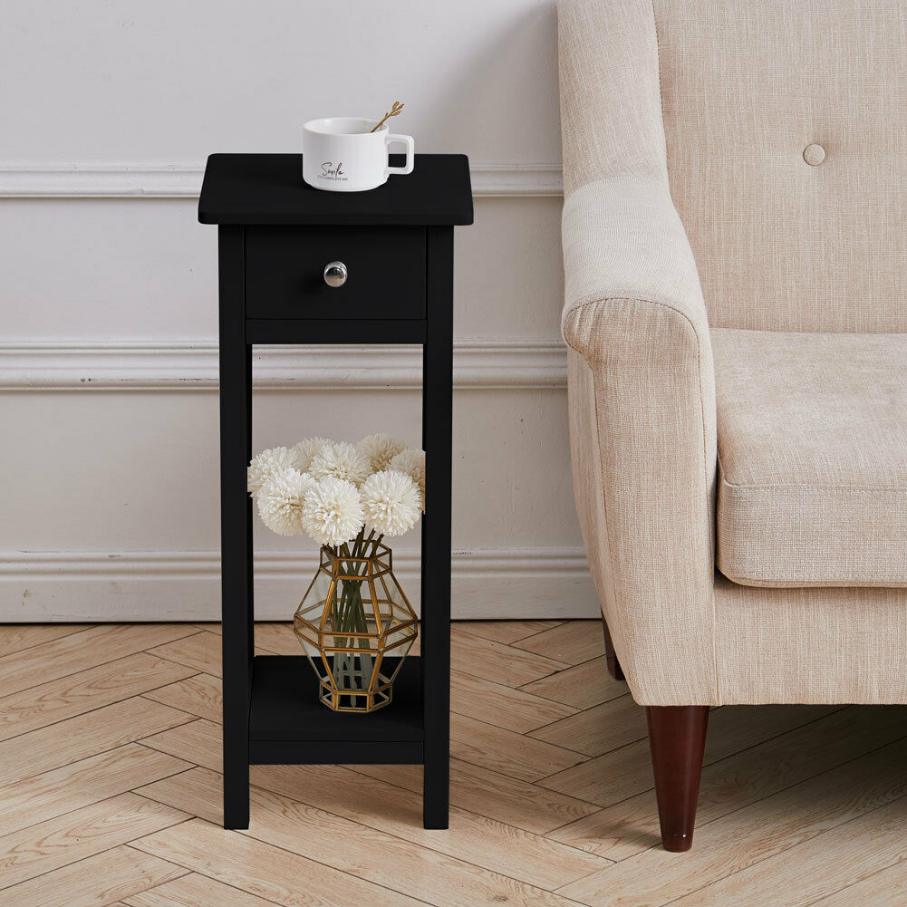 Small Tall Table Telephone/Lamp/Plant Stand Wood Unit with Drawer Shelf Hallway