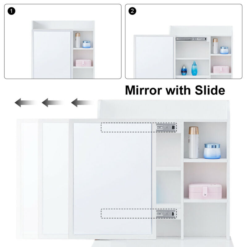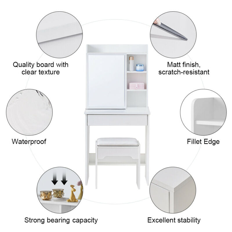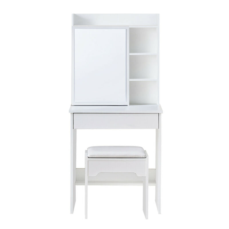 Small White Dressing Table Sliding Mirror Dresser Bedroom Makeup Desk with Stool