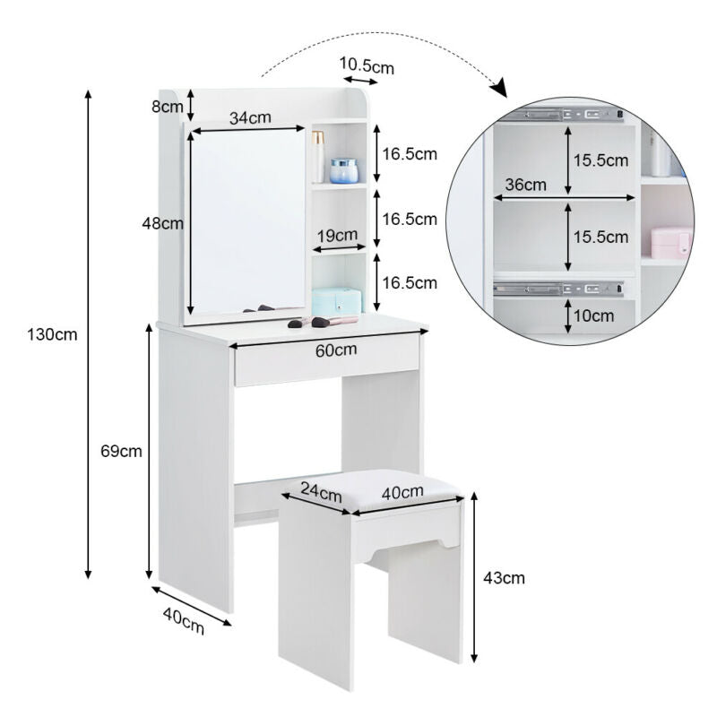 - Features: Flat Pack, With Mirror, With Stool