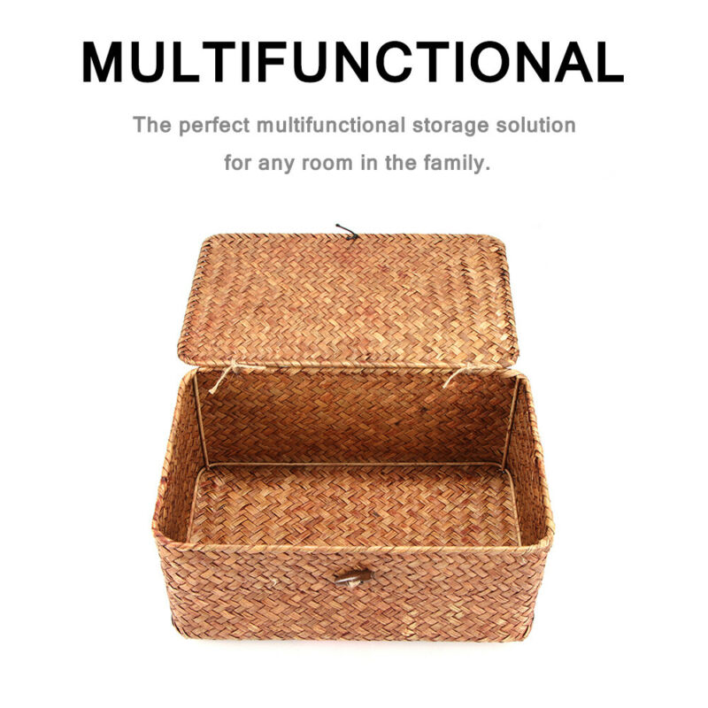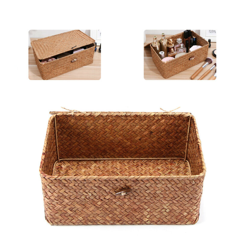 SMALL WICKERS STORAGE BASKET BOX WITH LID & LOCK WOVEN WICKER LANDRY HAMPER GIFT