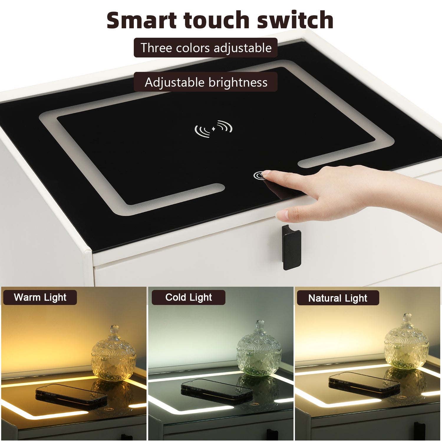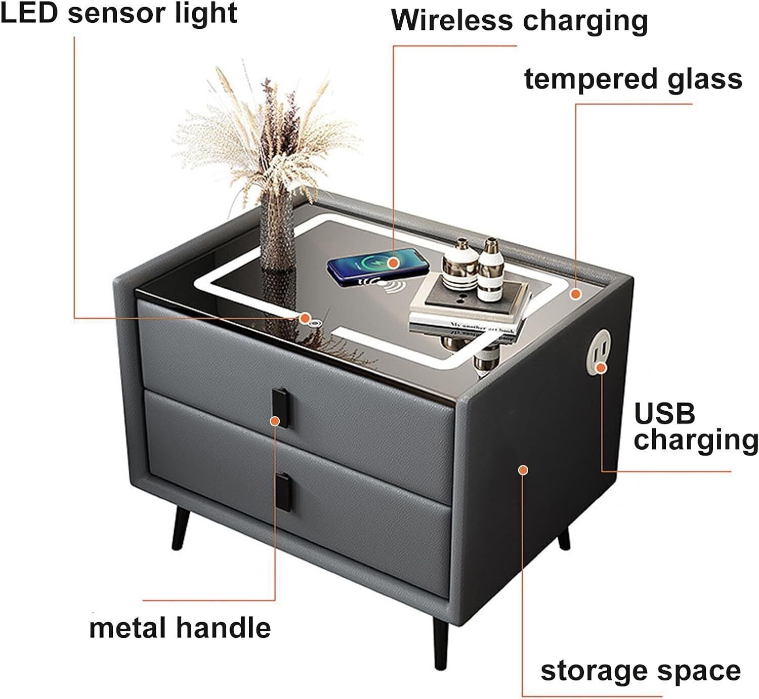 Smart Bedside Table with Light Phone Charging Modern Bedroom Furniture 2 Msngvta