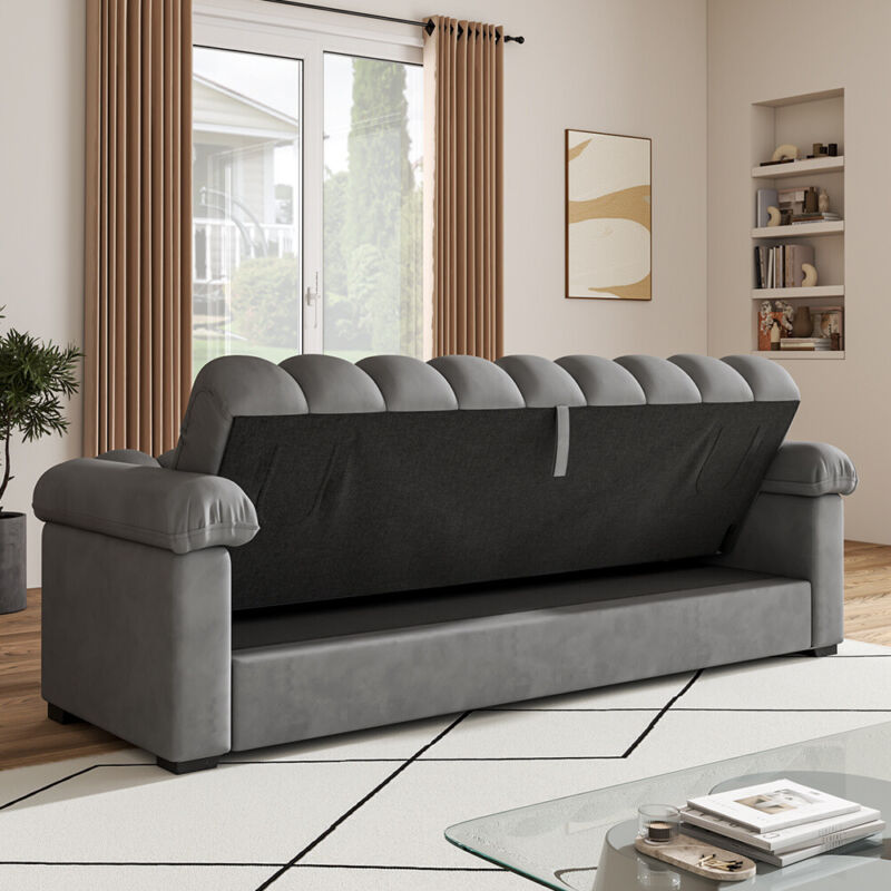 Smooth Velvet Sofa Bed 3 Seater Click Clack Couch Recliner Chair Bed with Pillow