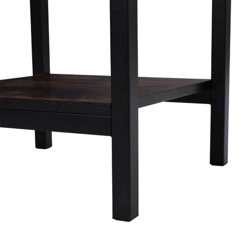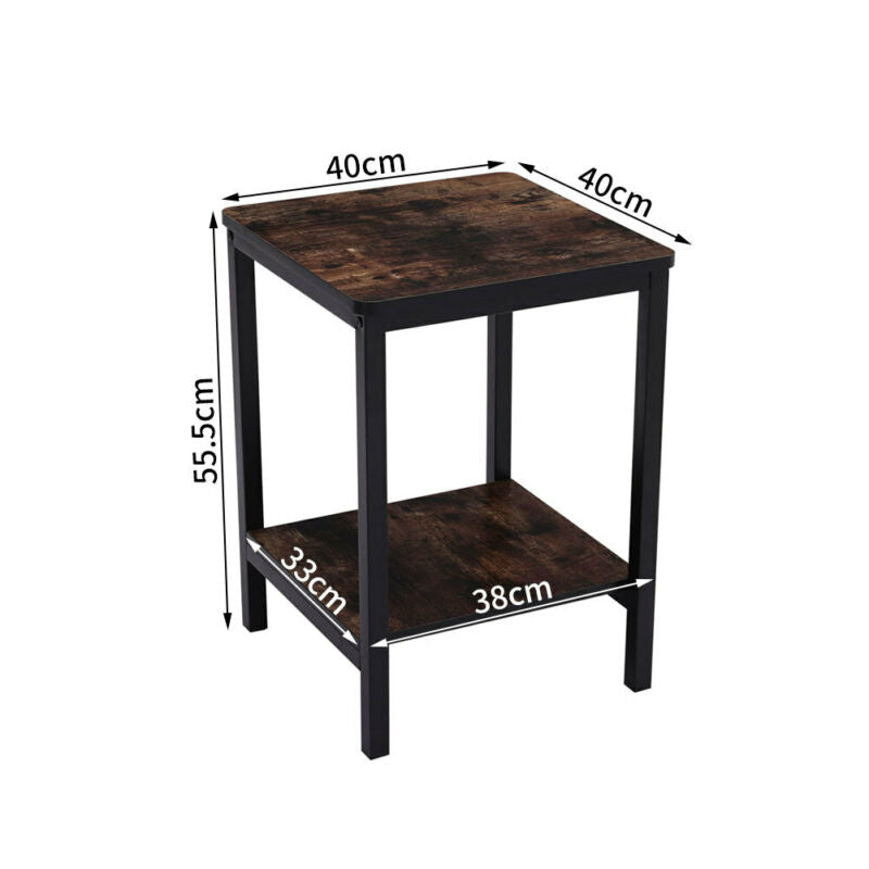 Sofa Side Coffee Table End Bedside Table Metal Frame 2 Shelf Storage Wooden Top