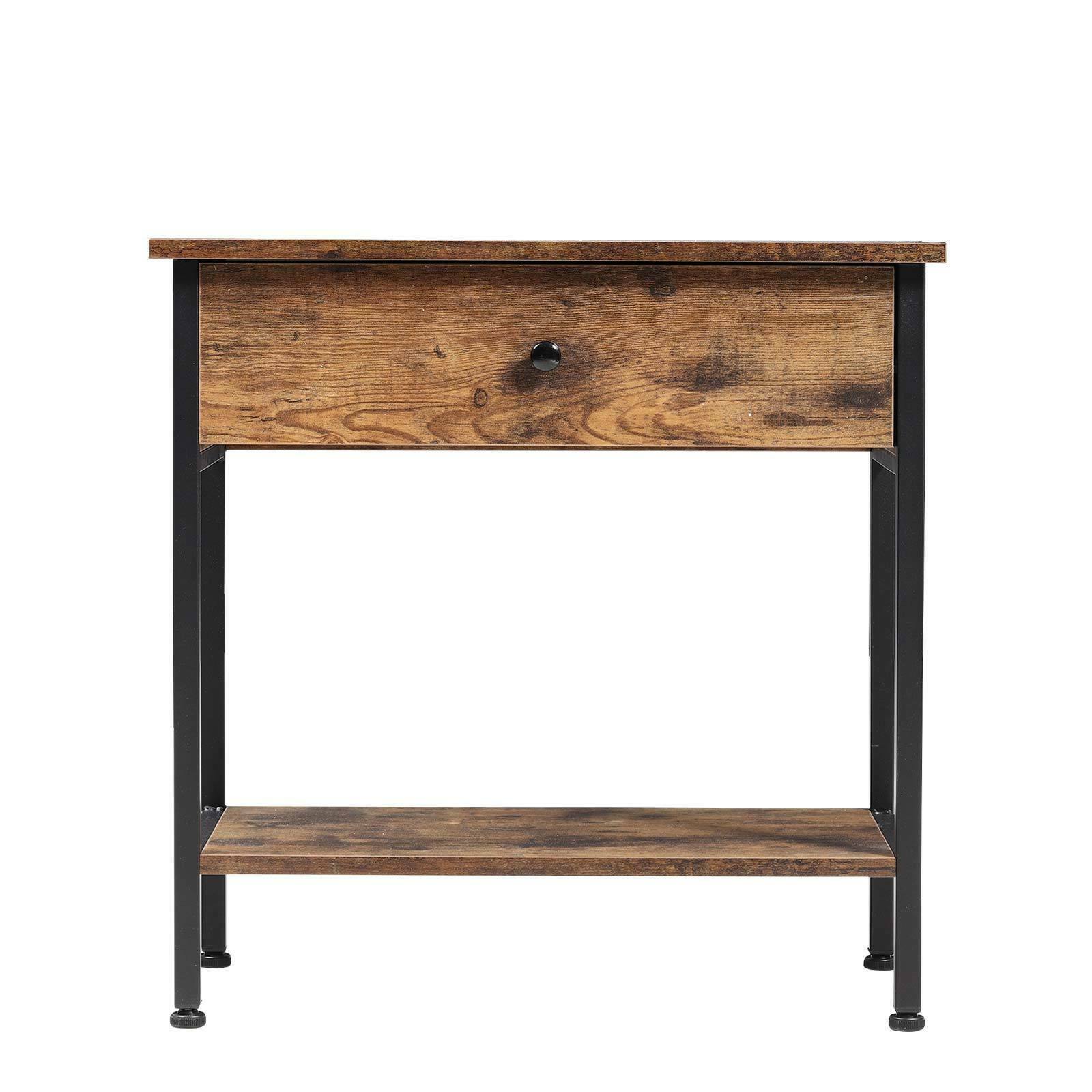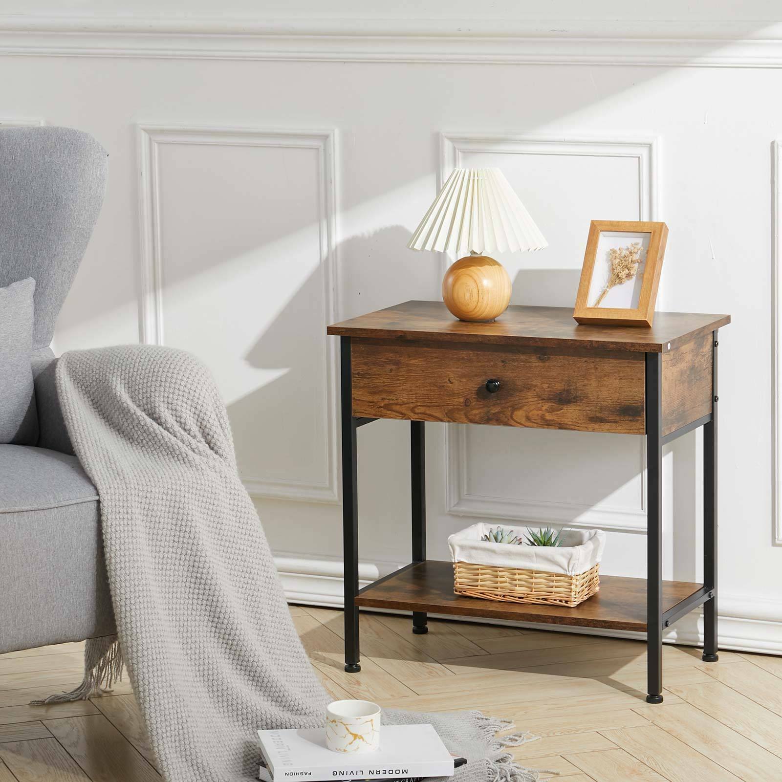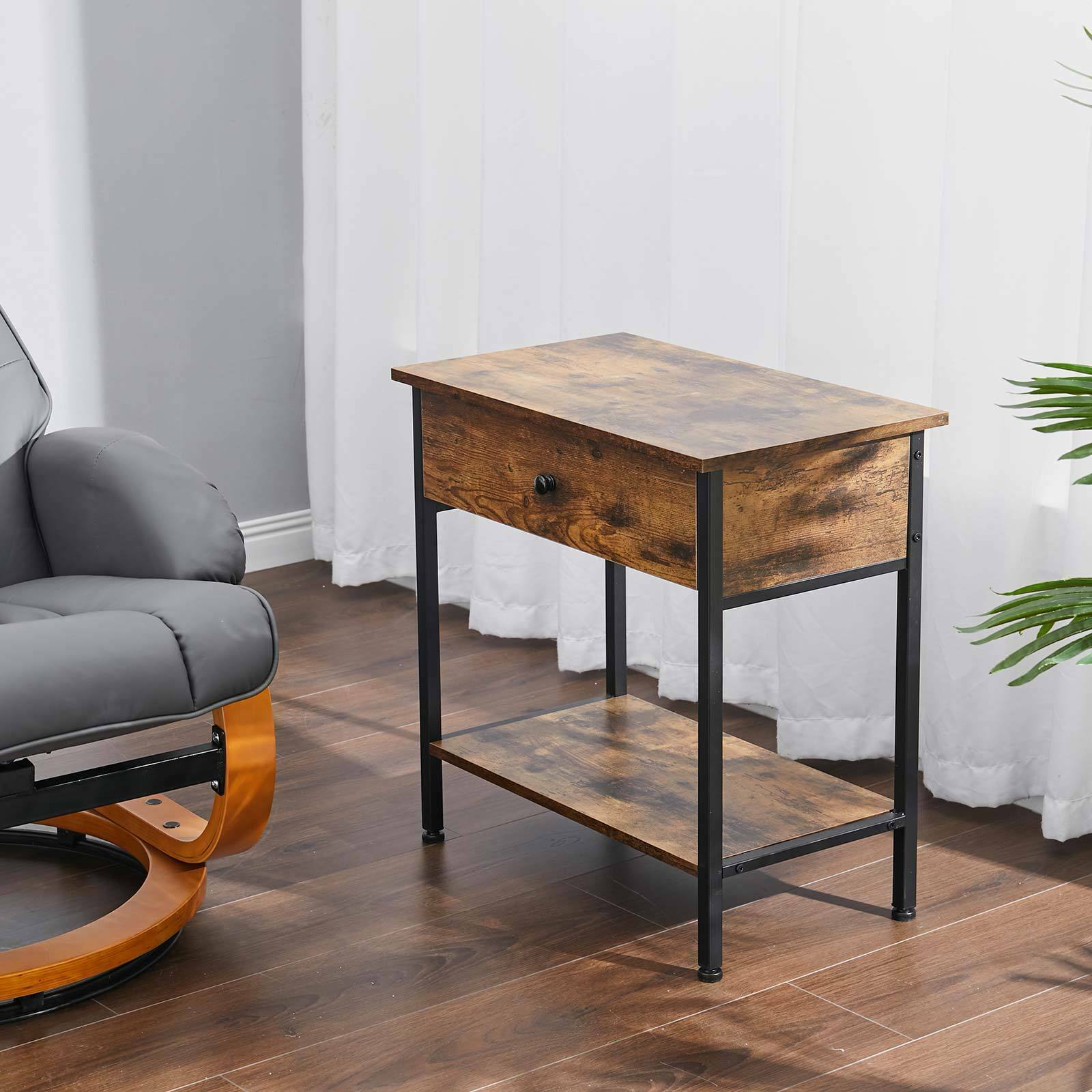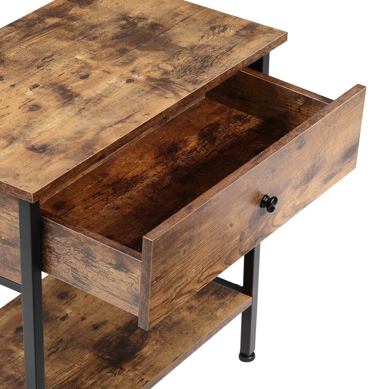 Sofa Side End Table Bedside Cabinet Industrial Wooden Nightstand with Drawer