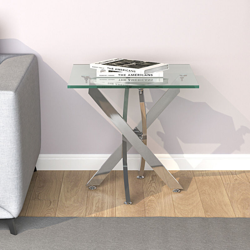 Sofa Side Table Glass Top Coffee End Tables With Cross 4 Legs Living Room Office