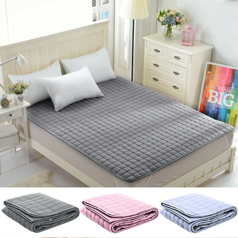 Soft Cotton Quilted Sheet Mat Bed Pad Plain for Mattress Single/Double/King Size