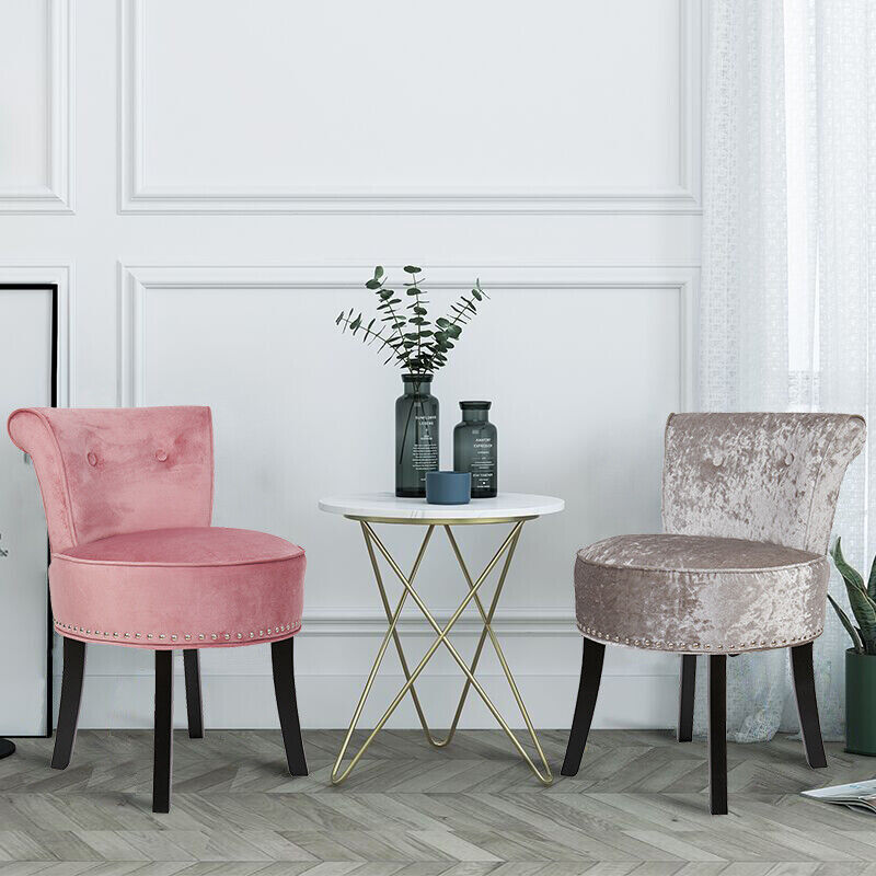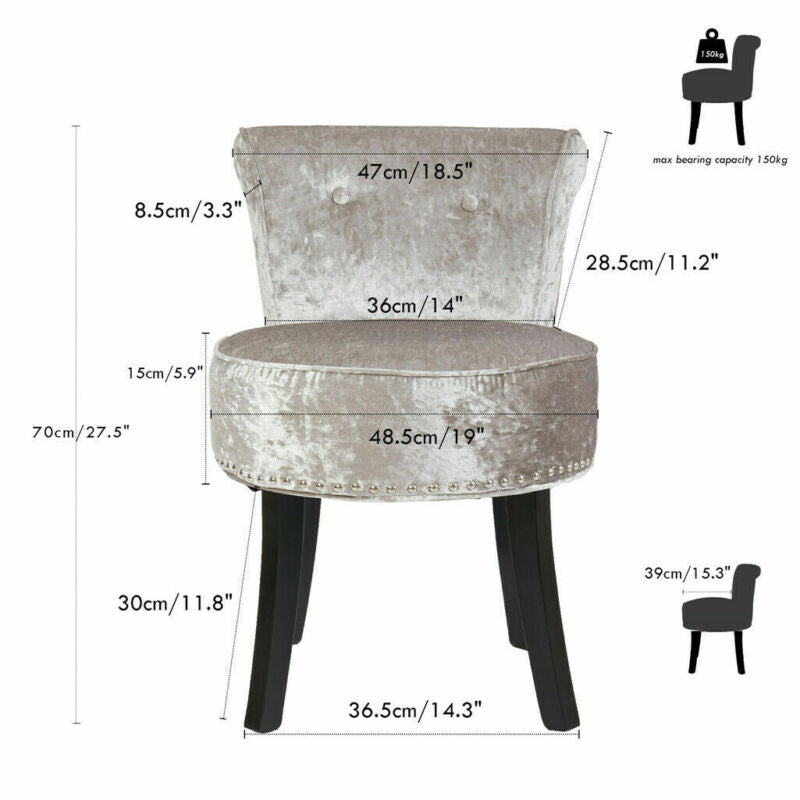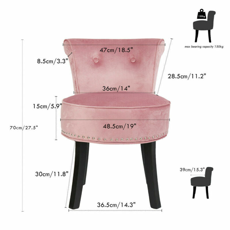 Soft Velvet Button Vanity Make Up Stool Widen Dressing Table Chair Backrest Seat