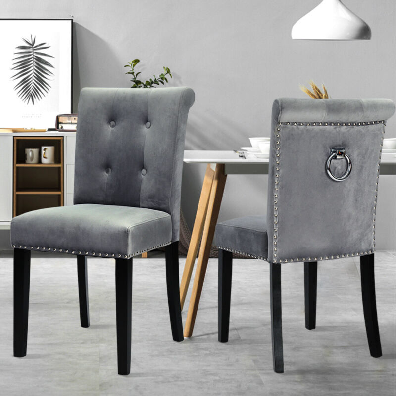 Soft Velvet Fabric Dining Chairs Kitchen Dining Room Seat Scroll Knocker Back