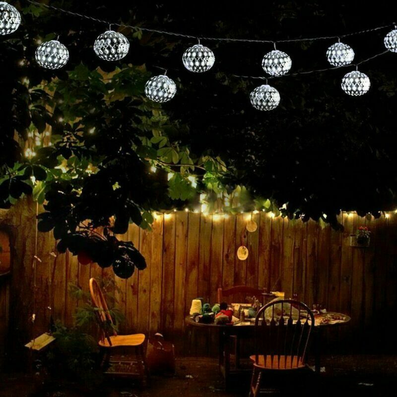 Solar LED Moroccan Ball Garden String Fairy Lights Hanging Lantern Lamp Outdoor