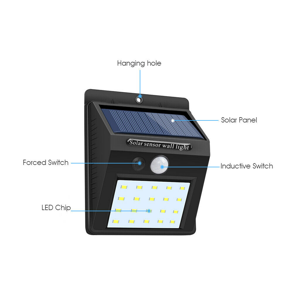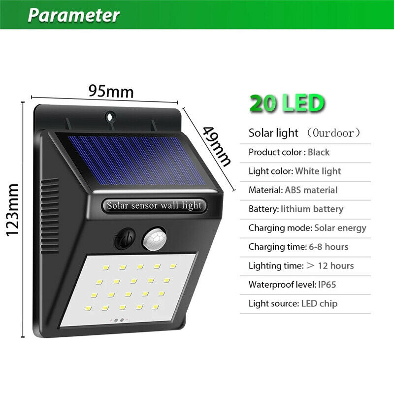 Solar Powered 20LED PIR Motion Sensor Wall Security Light Garden Outdoor Lamp UK