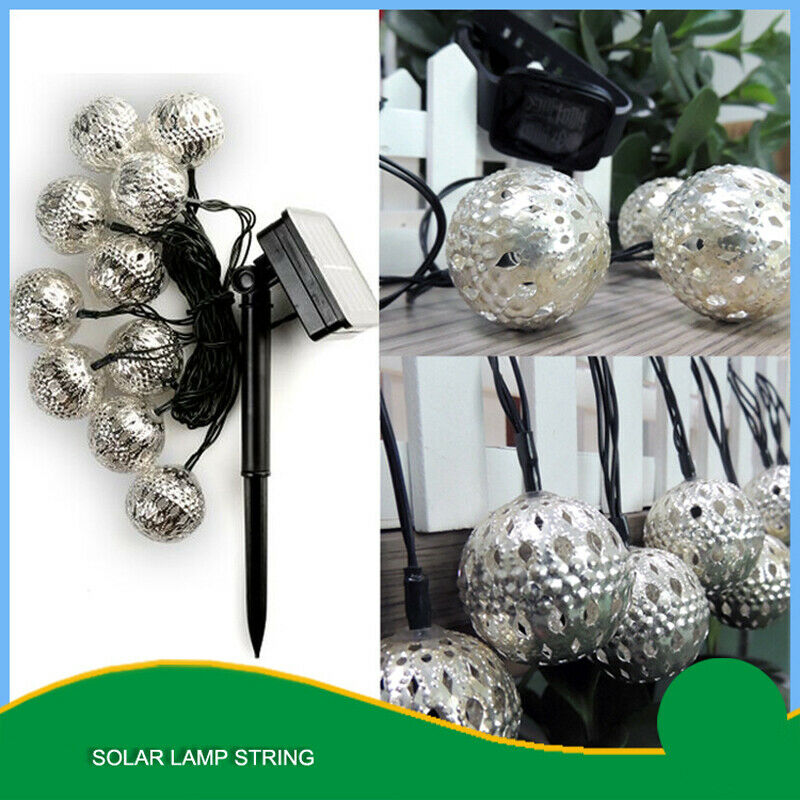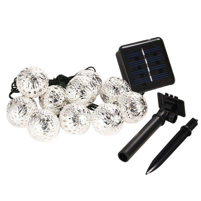 Solar Powered Fairy String Lights 20 LEDs Moroccan Silver Metal Ball Fairy Lamps