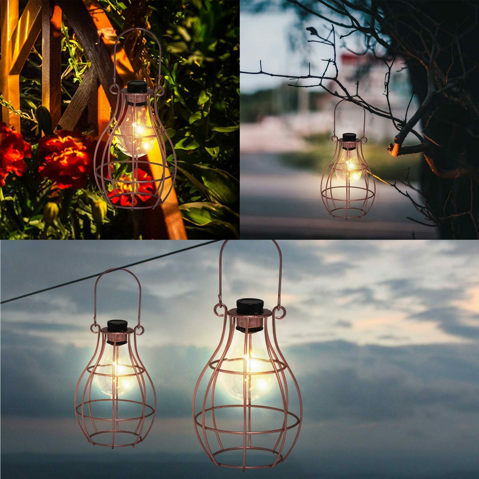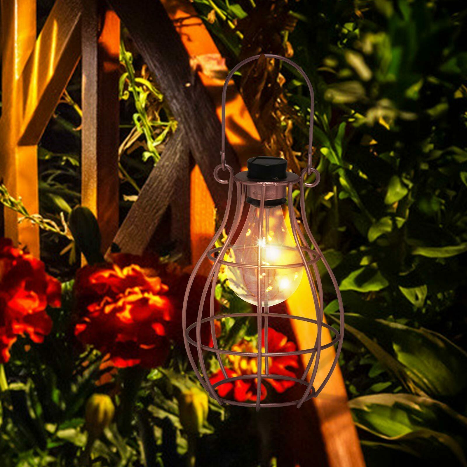 Solar Powered Hanging Copper Lantern Retro Outdoor Decor Light Table Lamp Bulb