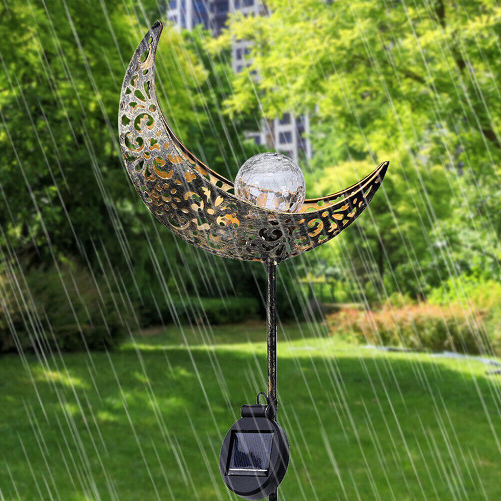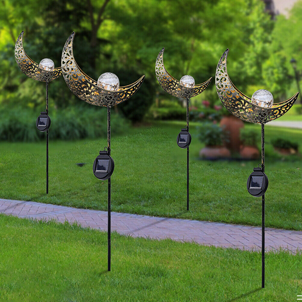 Solar Powered Moon Shaped LED Stake Garden Lamp Outdoor Lawn Waterproof Light