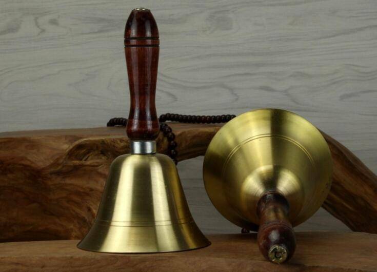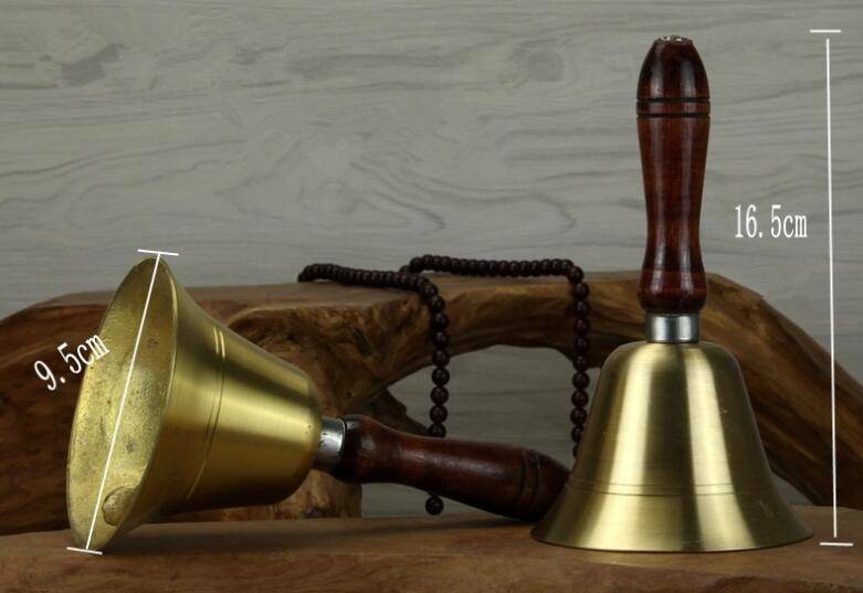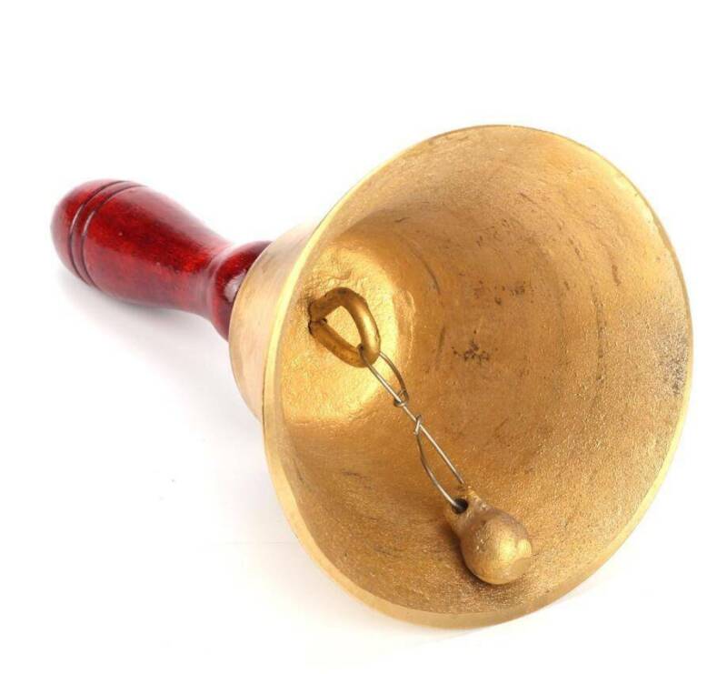Solid Brass Wooden Handle School Dinner Large Hand Bell Handbell 17cm Reception