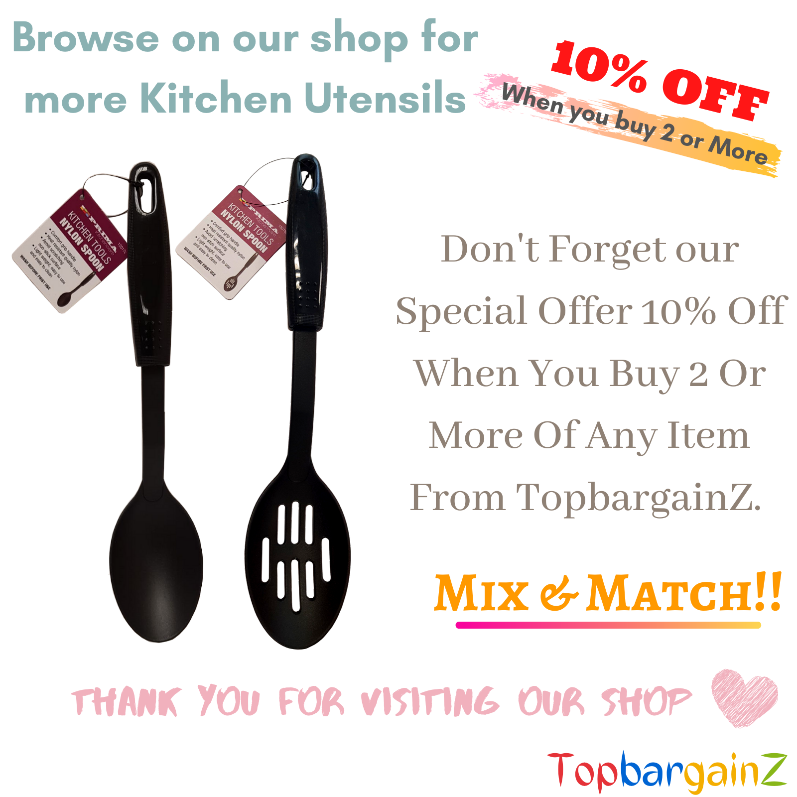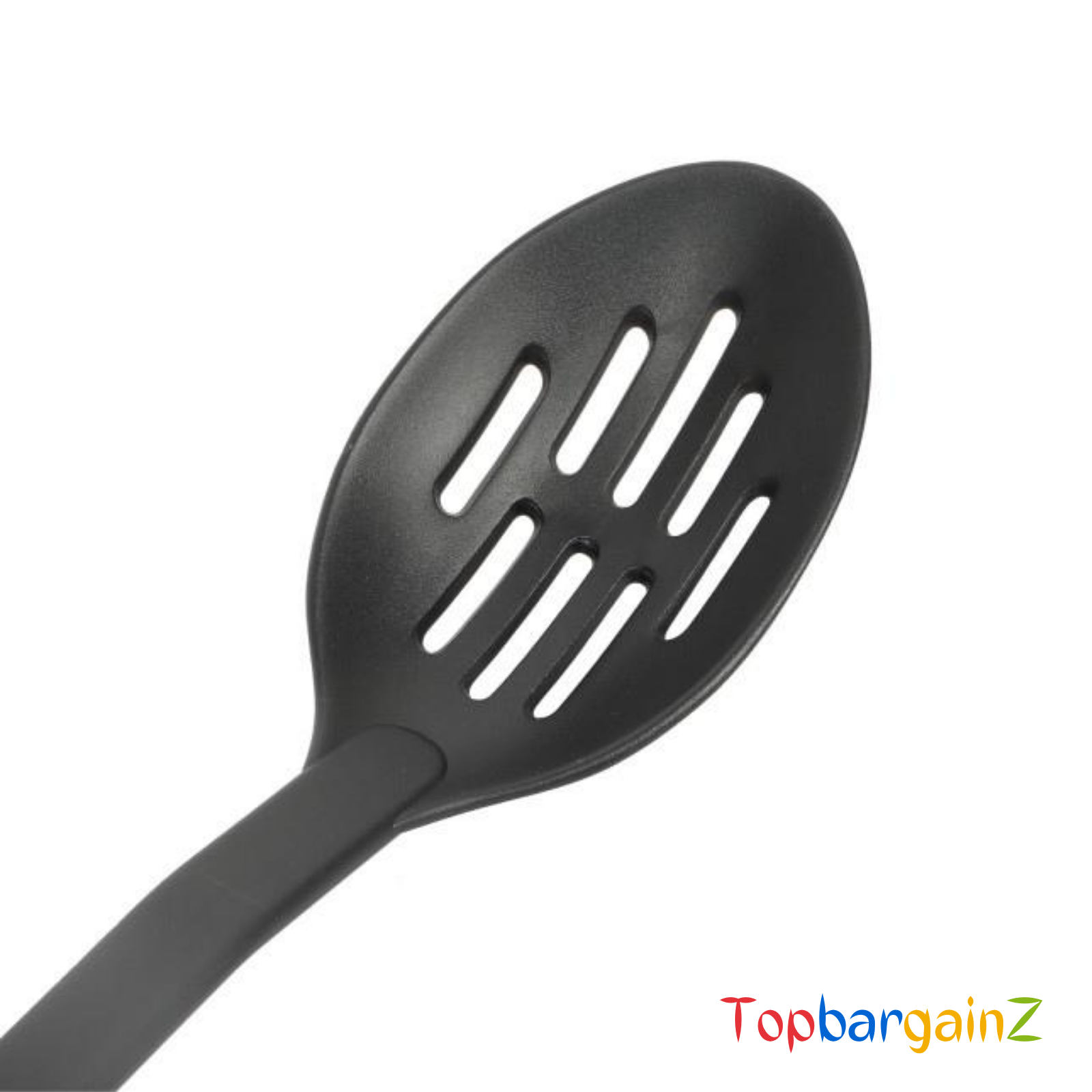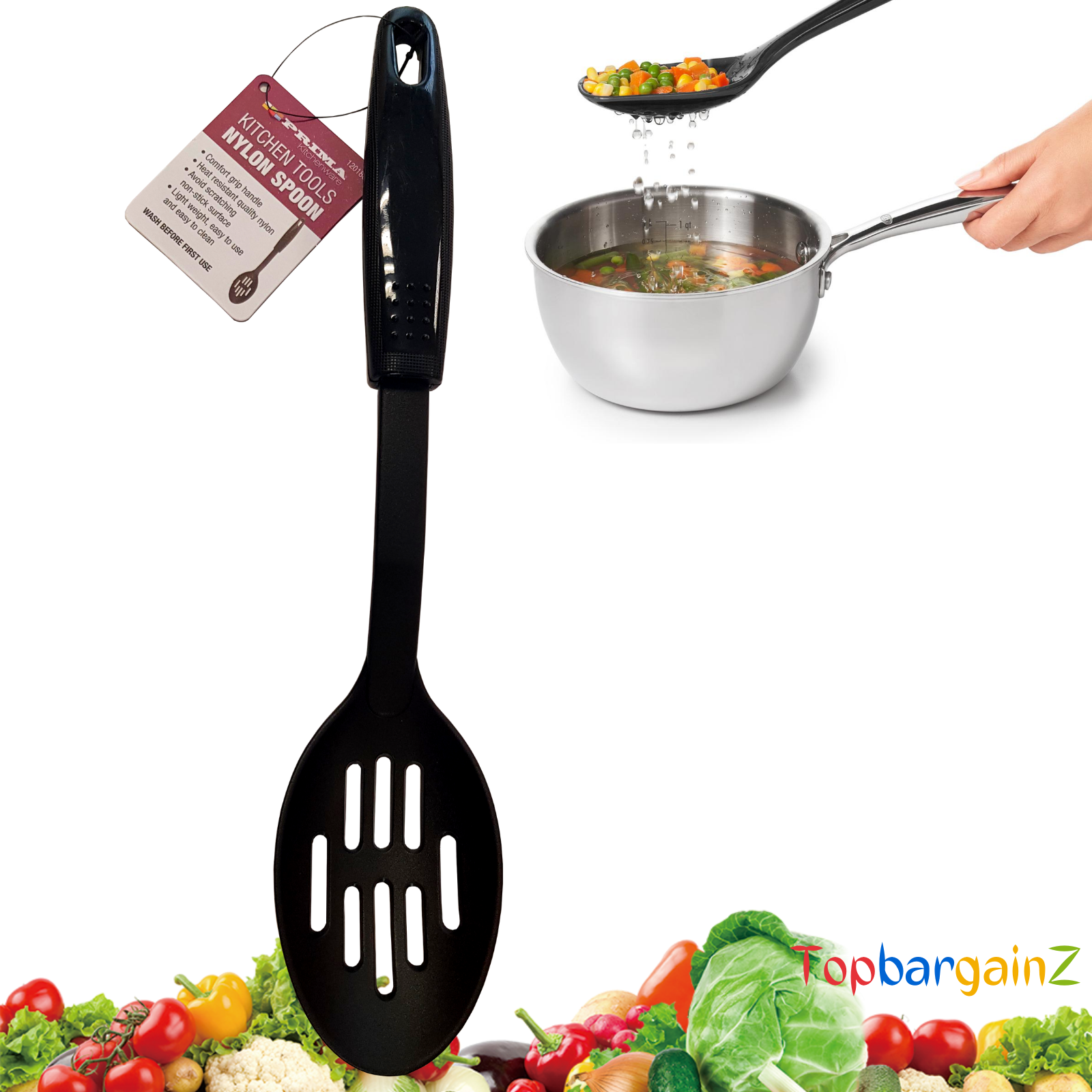 Solid Slotted Spoon Nylon Black Non Stick Cooking Serving Kitchen Heat Resistant