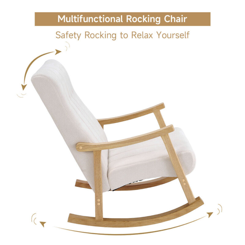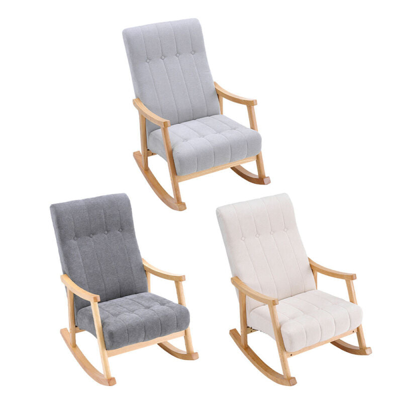 Solid Wood Frame Rocking Chairs Shell Back Rocker Sofa Cashmere Cushion Armchair