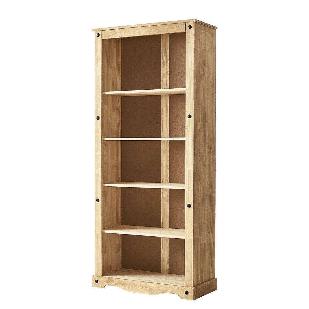 Solid Wood Pine Large Bookcase Tall 5 Shelf Display Shelves Unit Livingroom UK