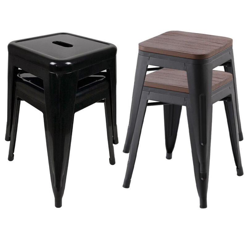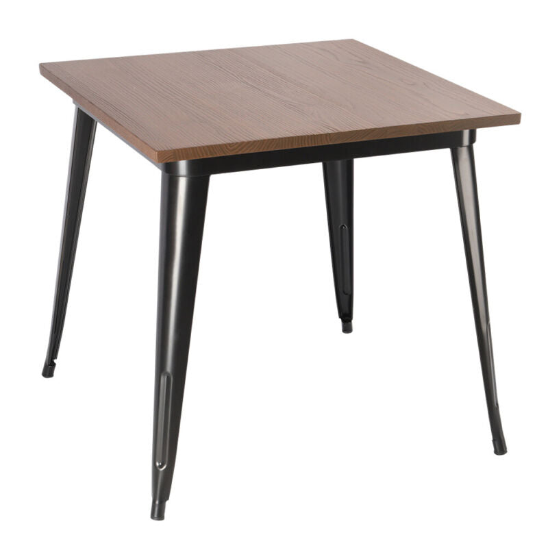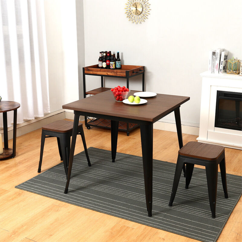 SOLID WOOD TOP SQUARE METAL DINING TABLE WITH 2/4 CHAIRS STOOL INDUSTRIAL STYLE
