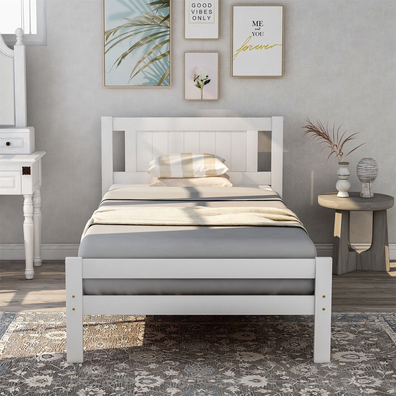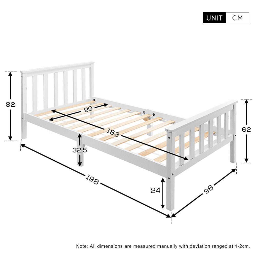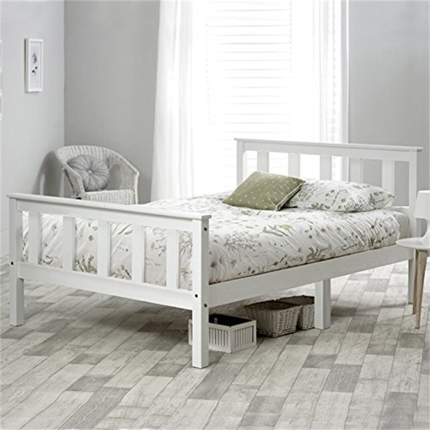 Solid Wooden Bed Frame White Grey 3ft Single 4ft6 Double Size Bed With Mattress