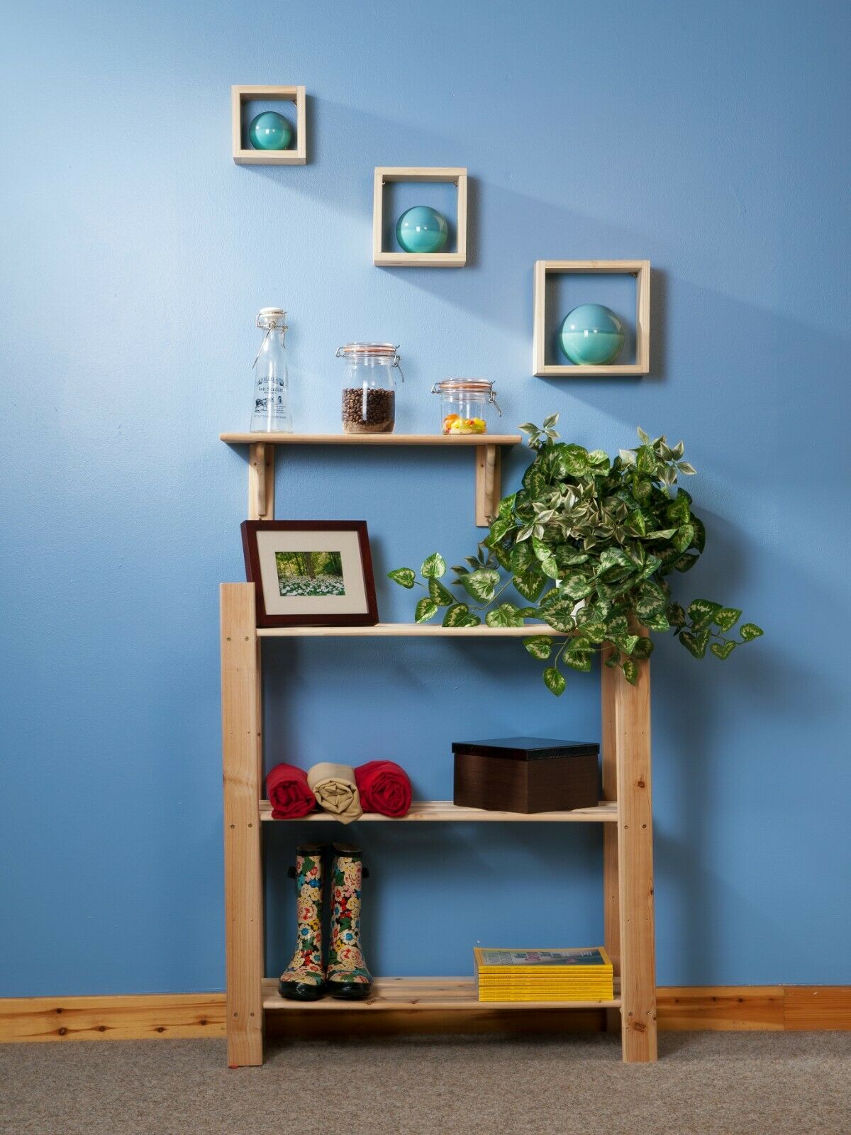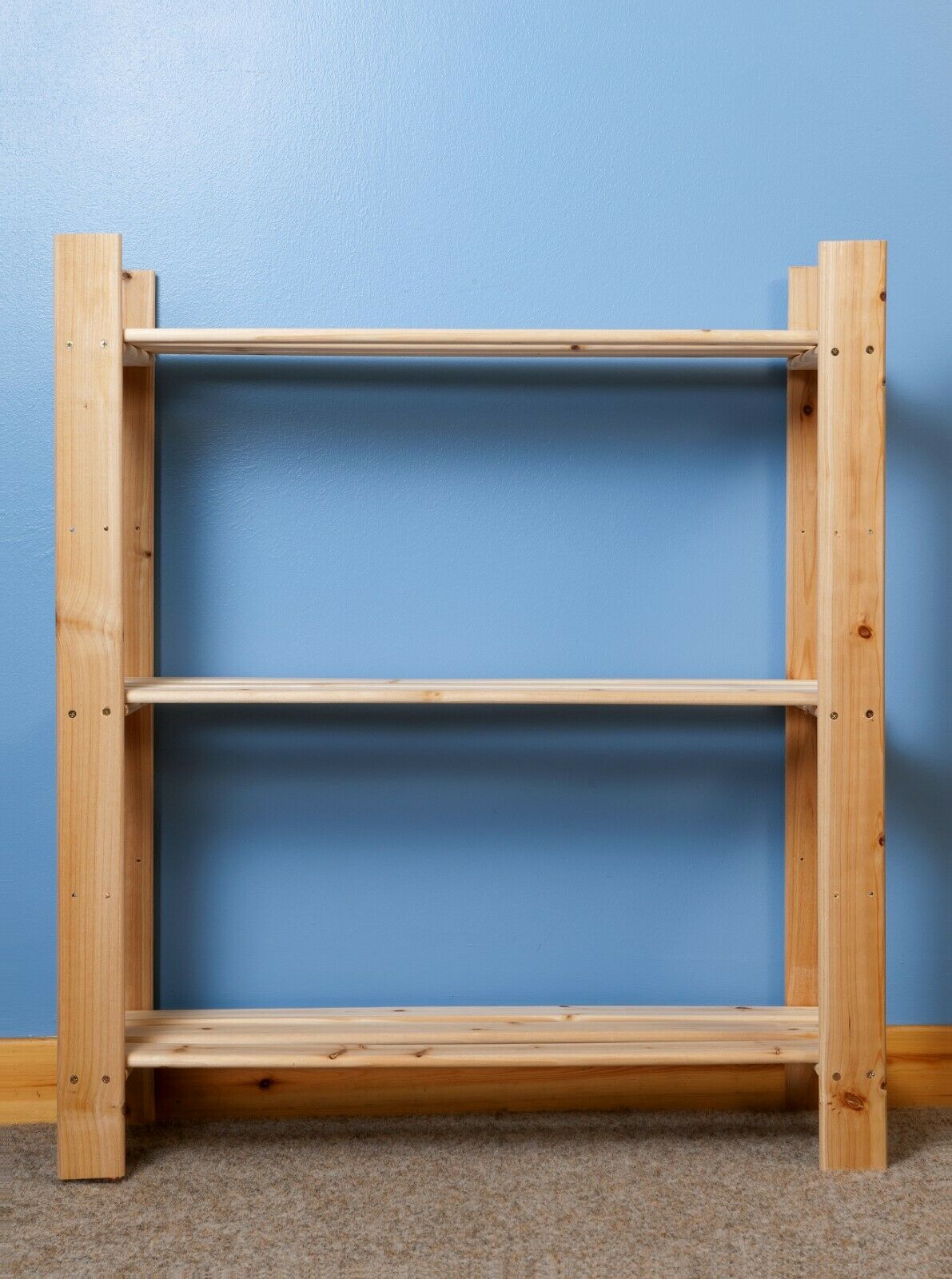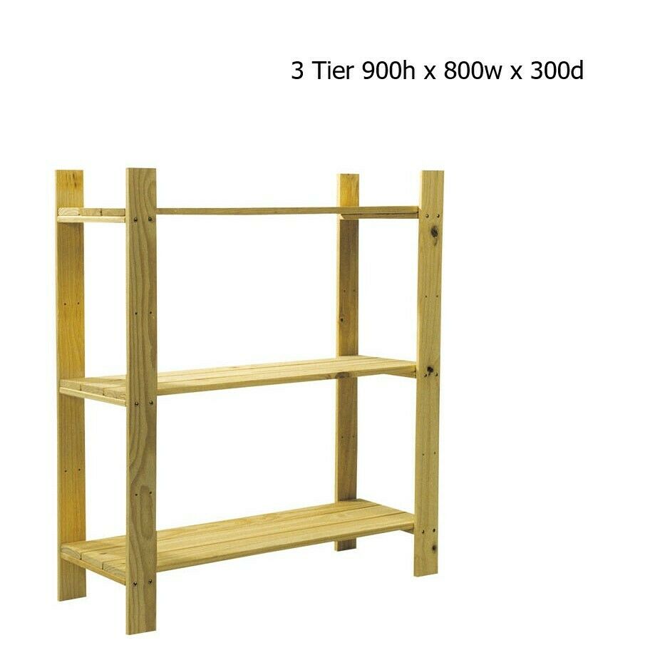 SOLID WOODEN STORAGE SHELF 3 & 5 TIER SHELVING UNIT, GARAGE, HOME SHED, BOOKCASE