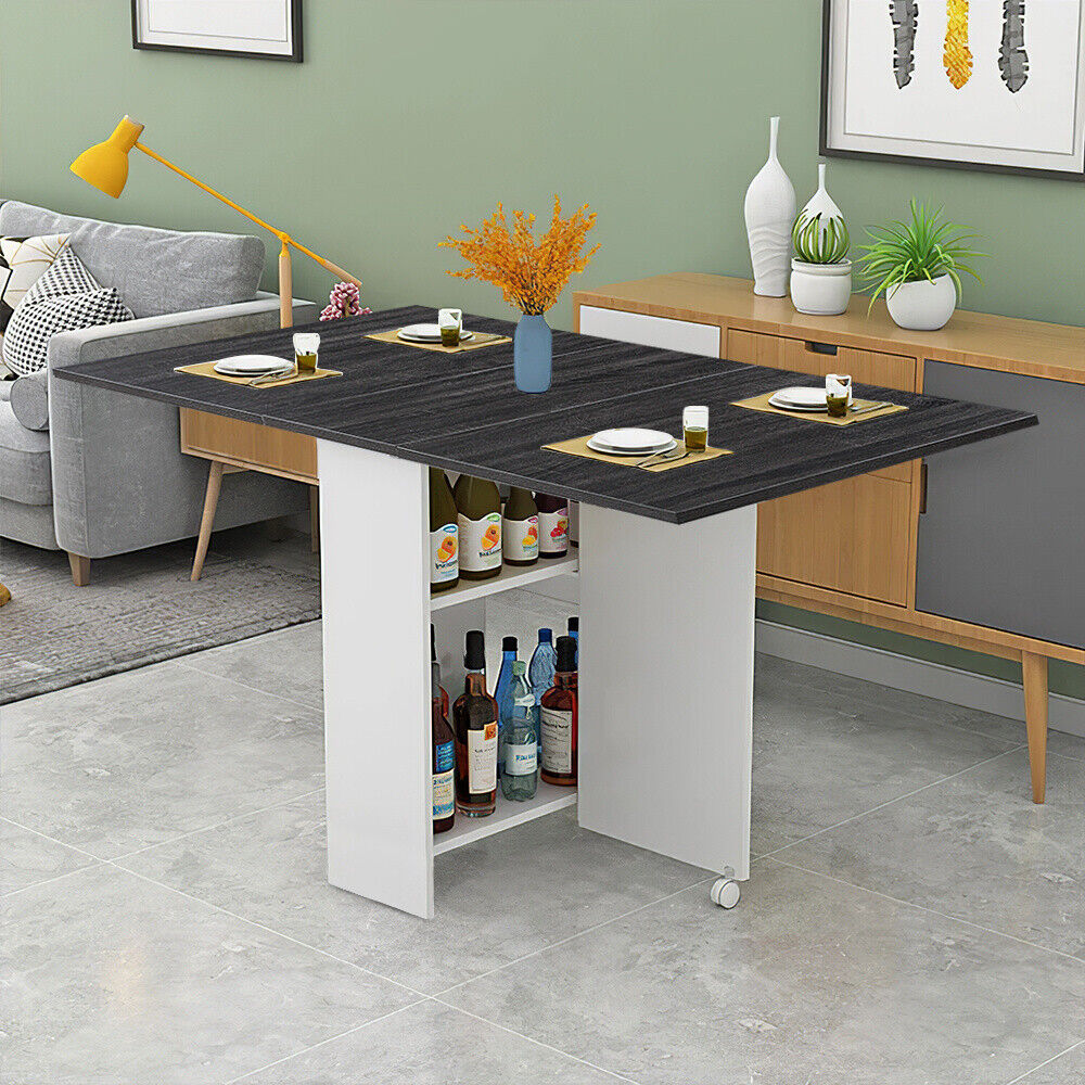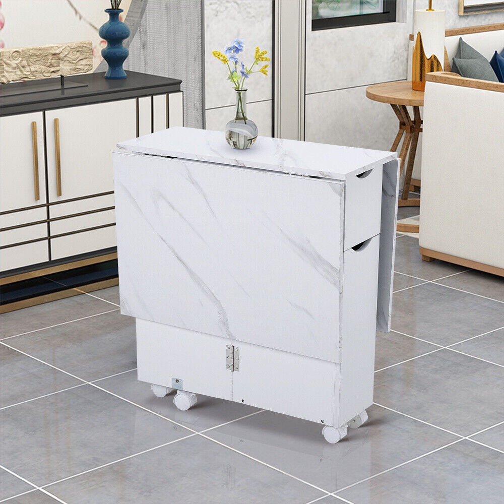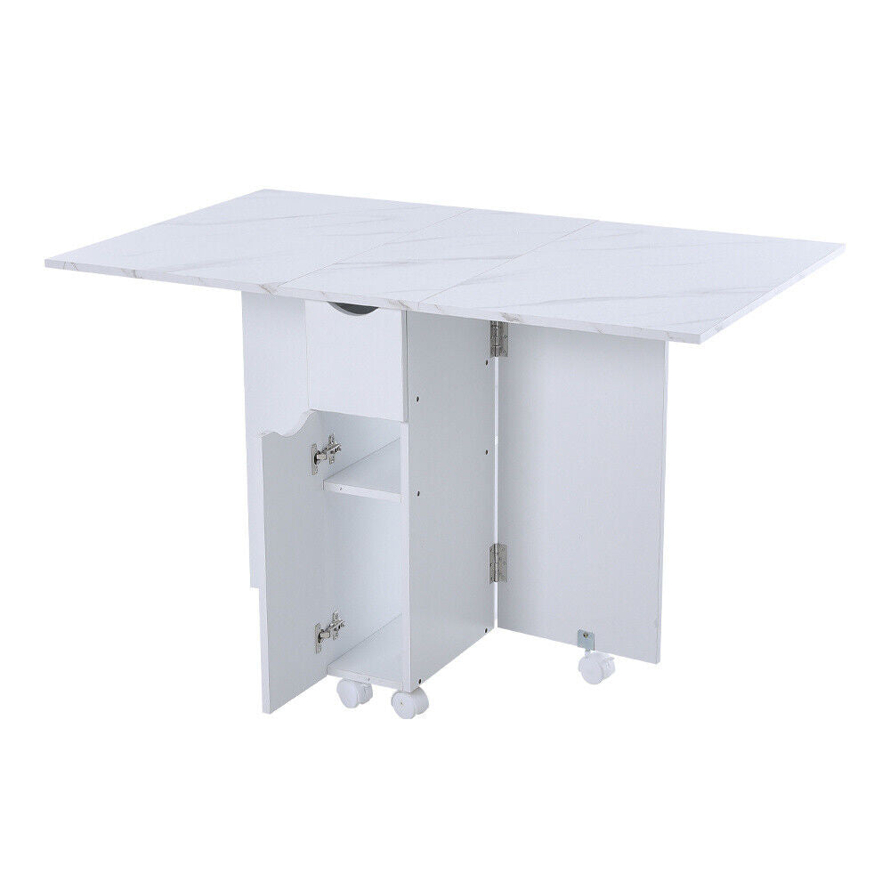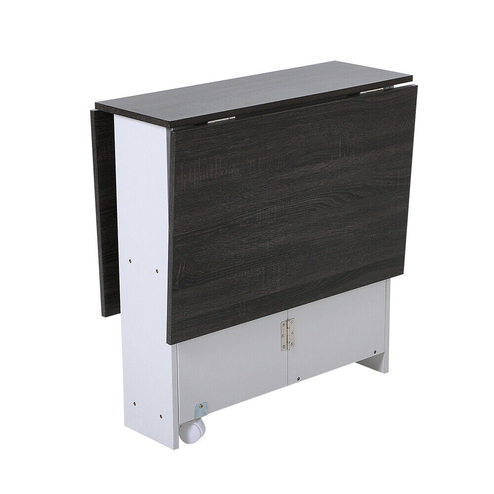 Space Saving Expandable Desk Drop Leaf Folding Dining Table Shelves& Drawer Wood