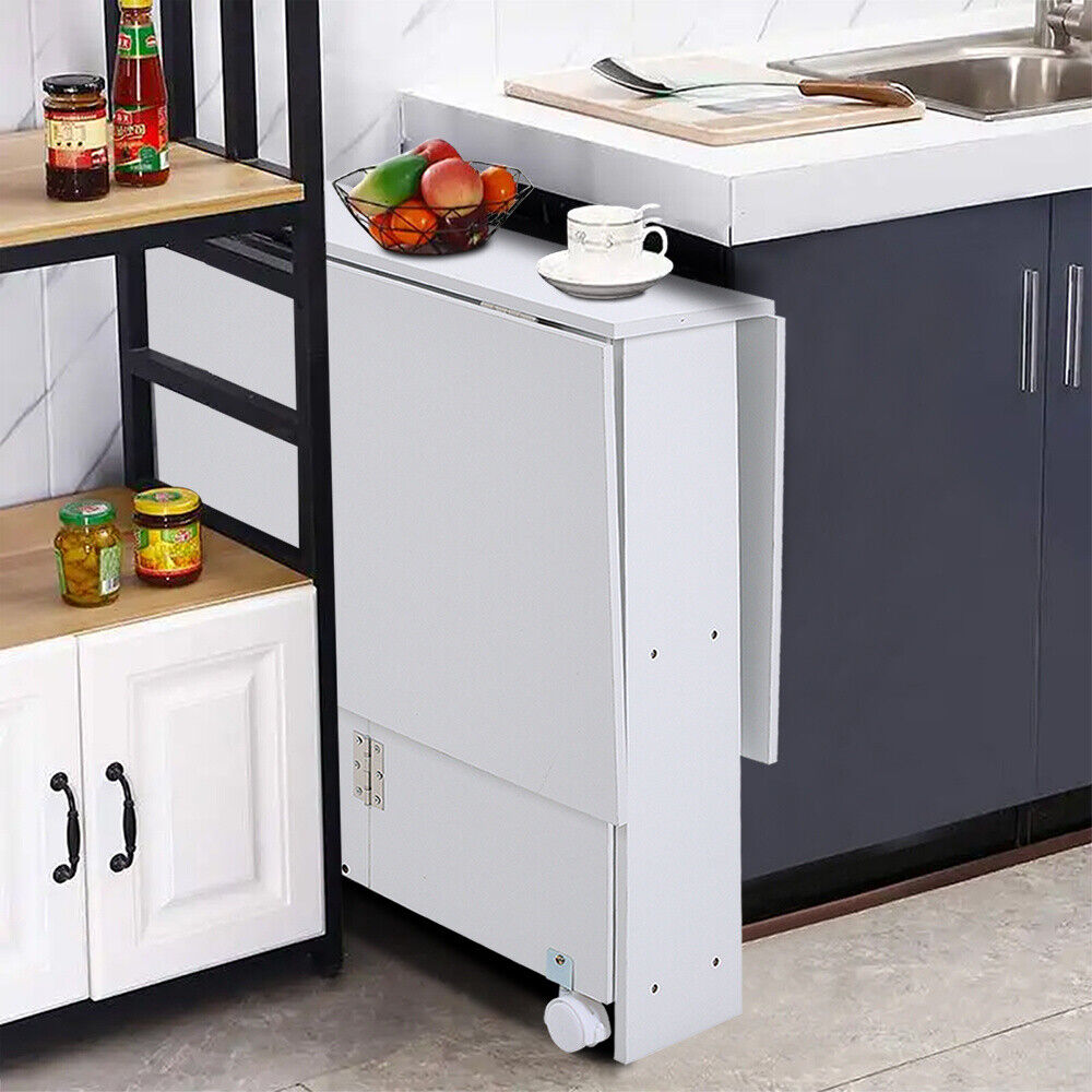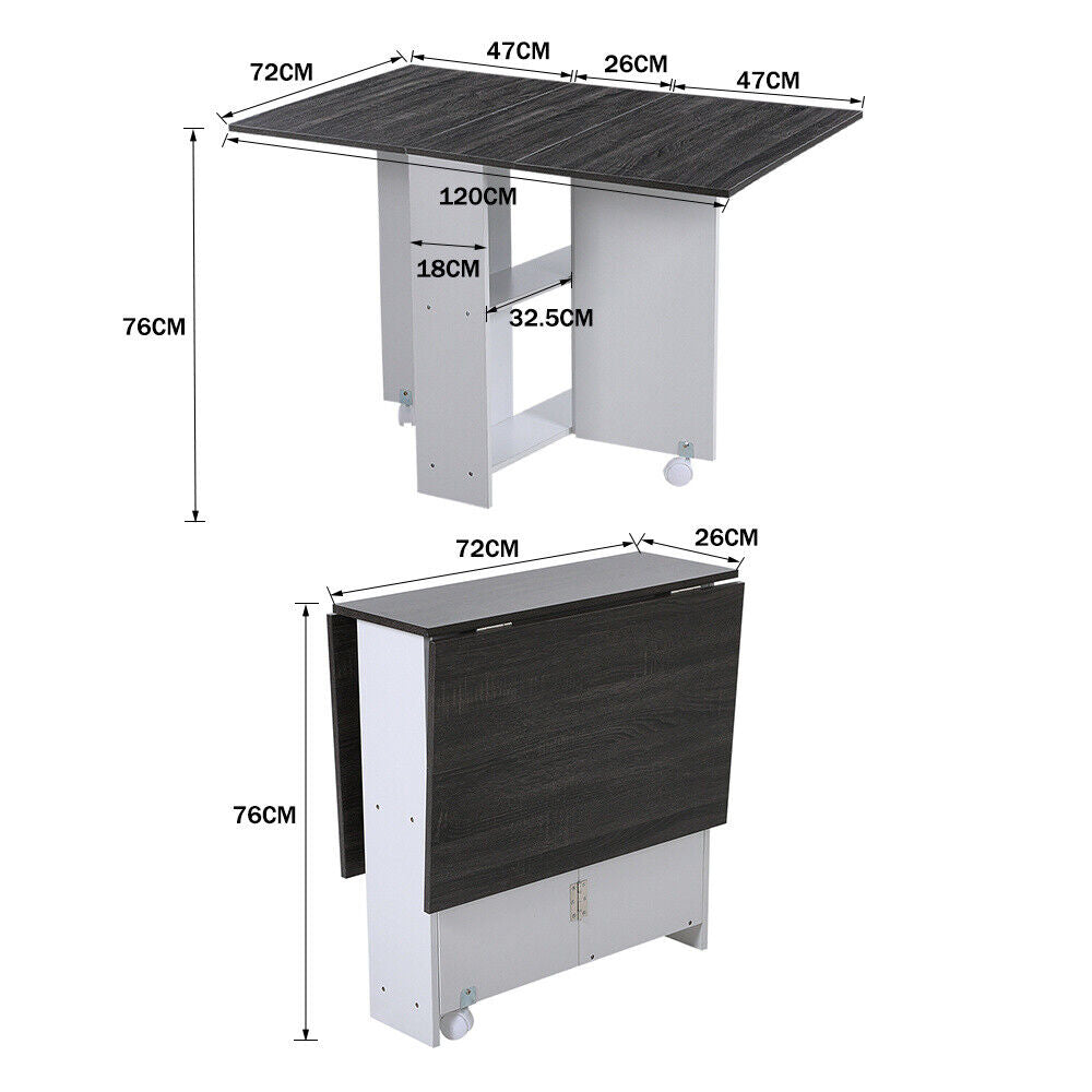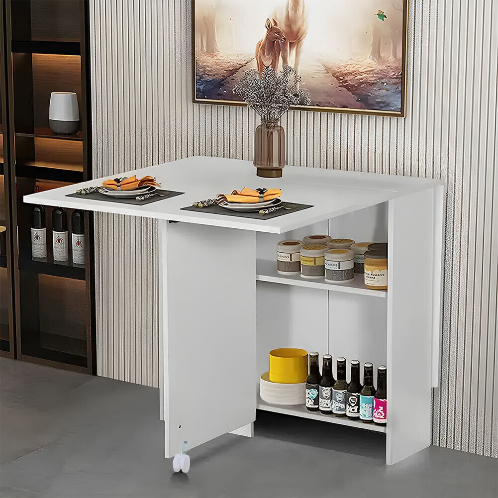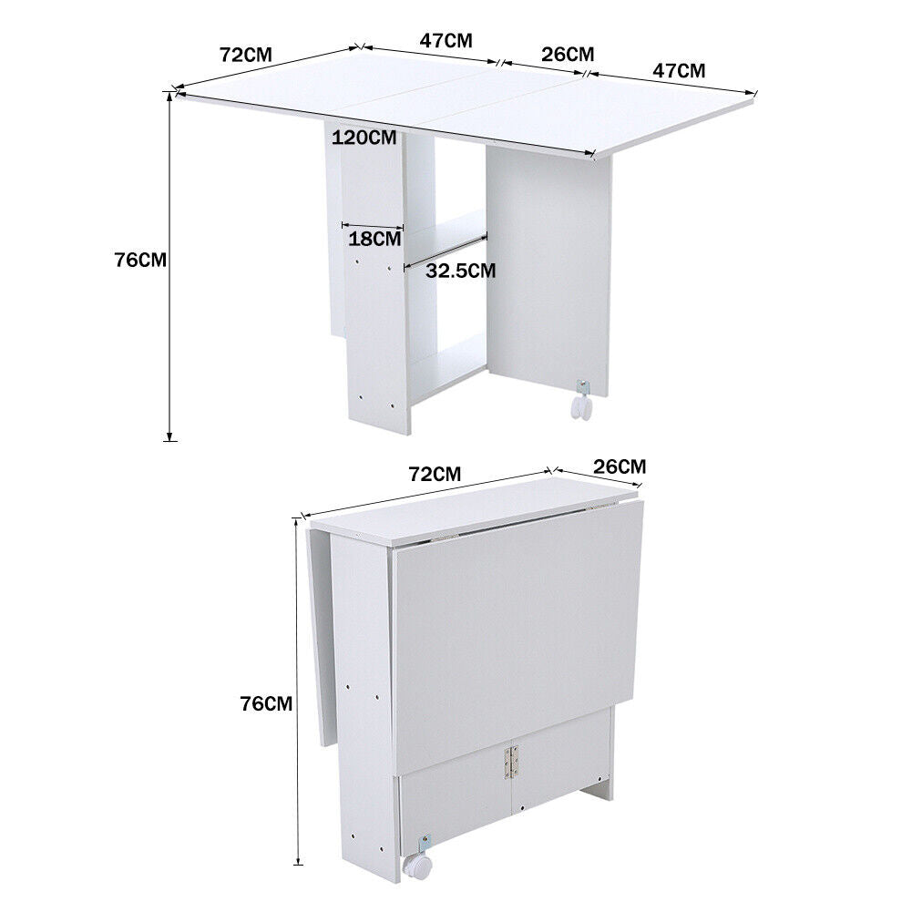 Space Saving Expandable Desk Drop Leaf Folding Dining Table Shelves& Drawer Wood
