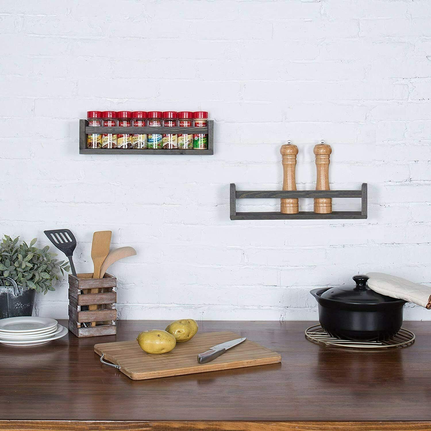 Spice Jar Rack Floating Wall Mounting Wooden Shelves Shelf Display Book Storage