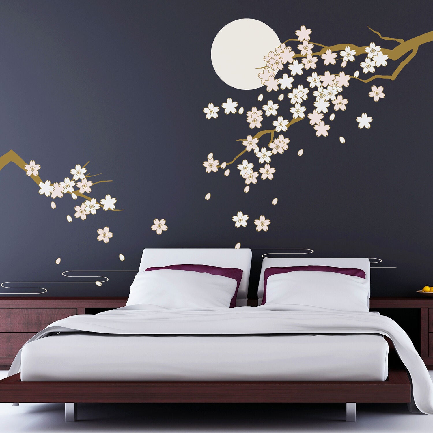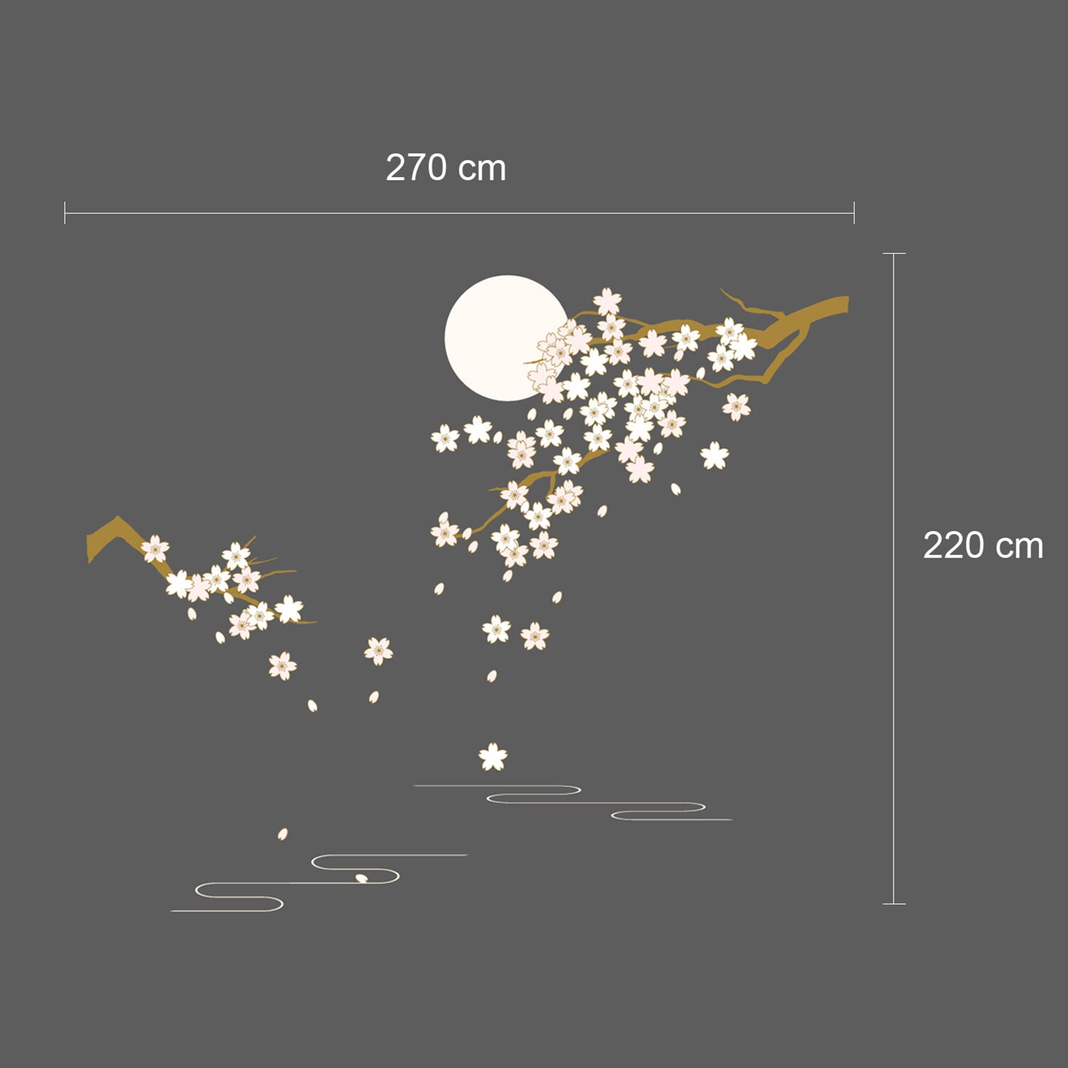 Spring Cherry Blossom Moonlight Large Wall Stickers Mural Art Decoration Decal