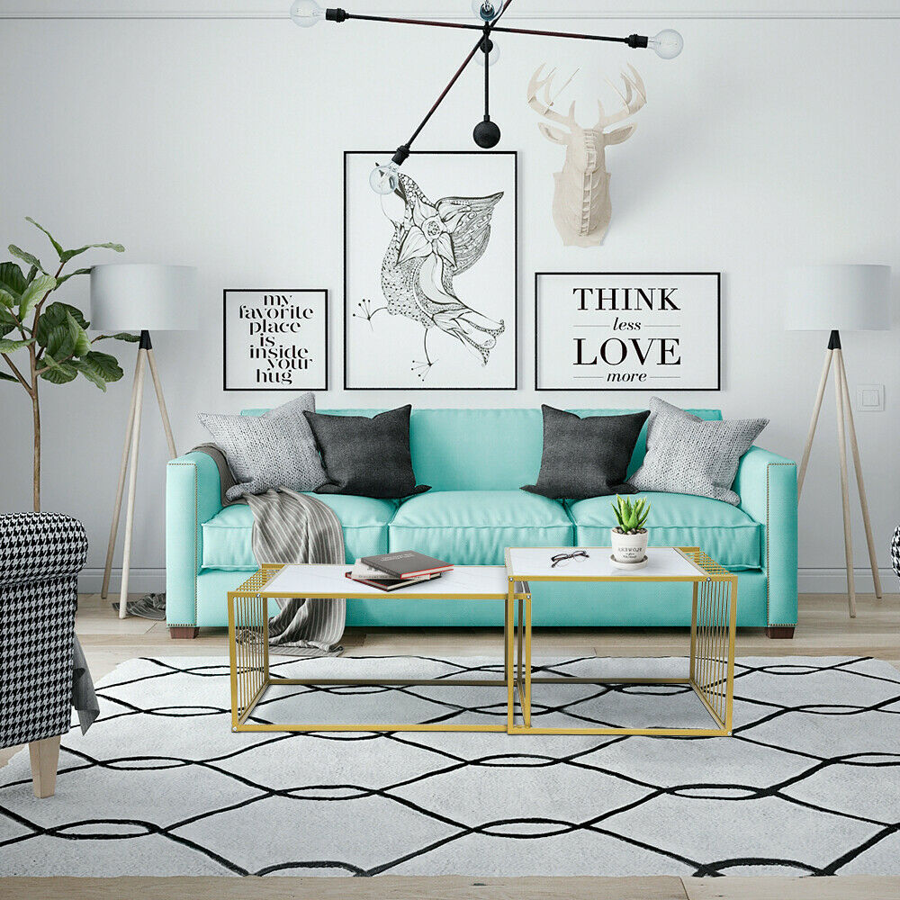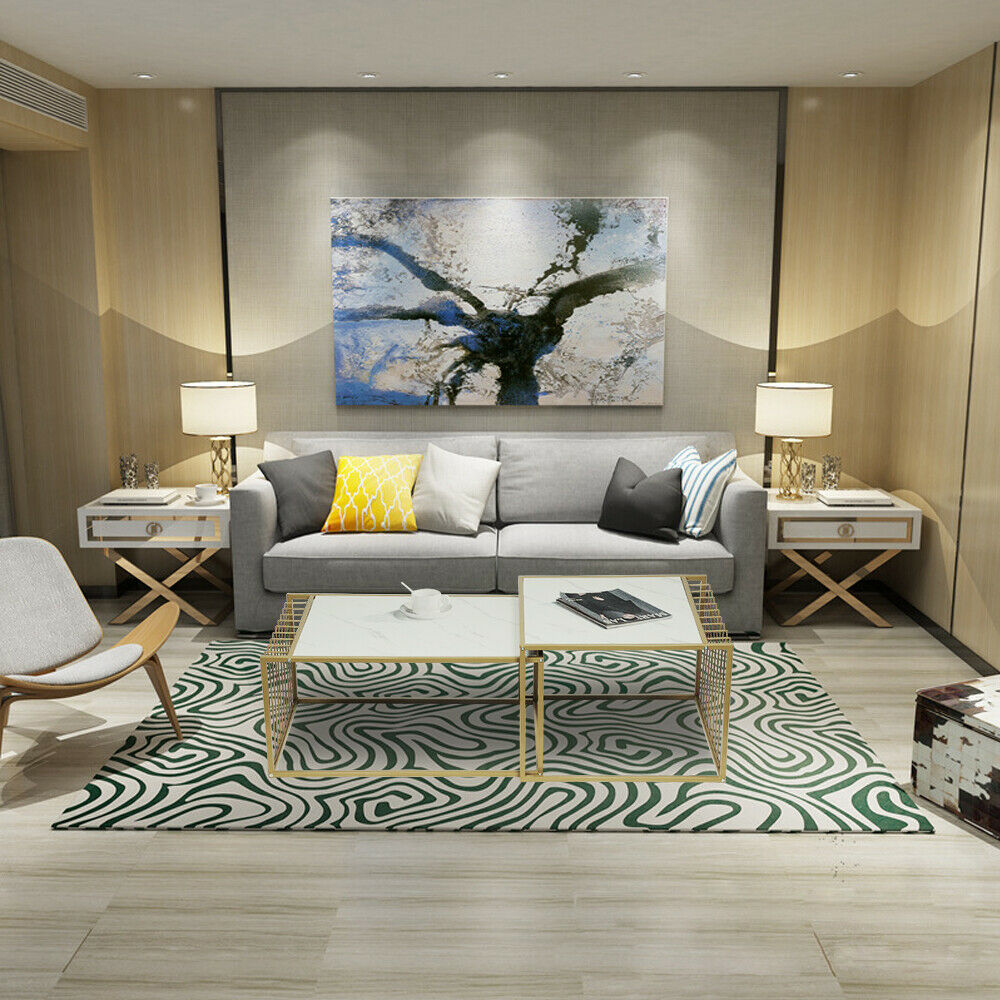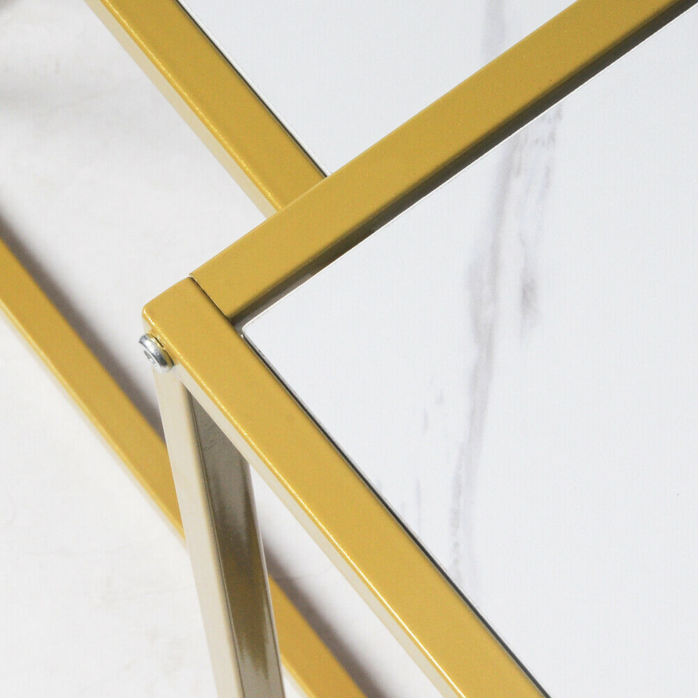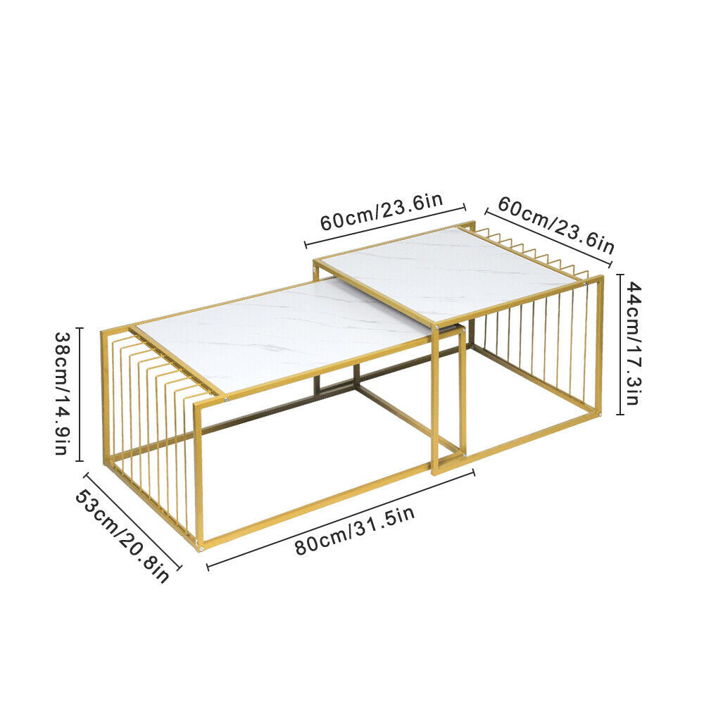 Square Coffee Table Set Sofa Tables Nested Side Living Room Home Marble Vein UK