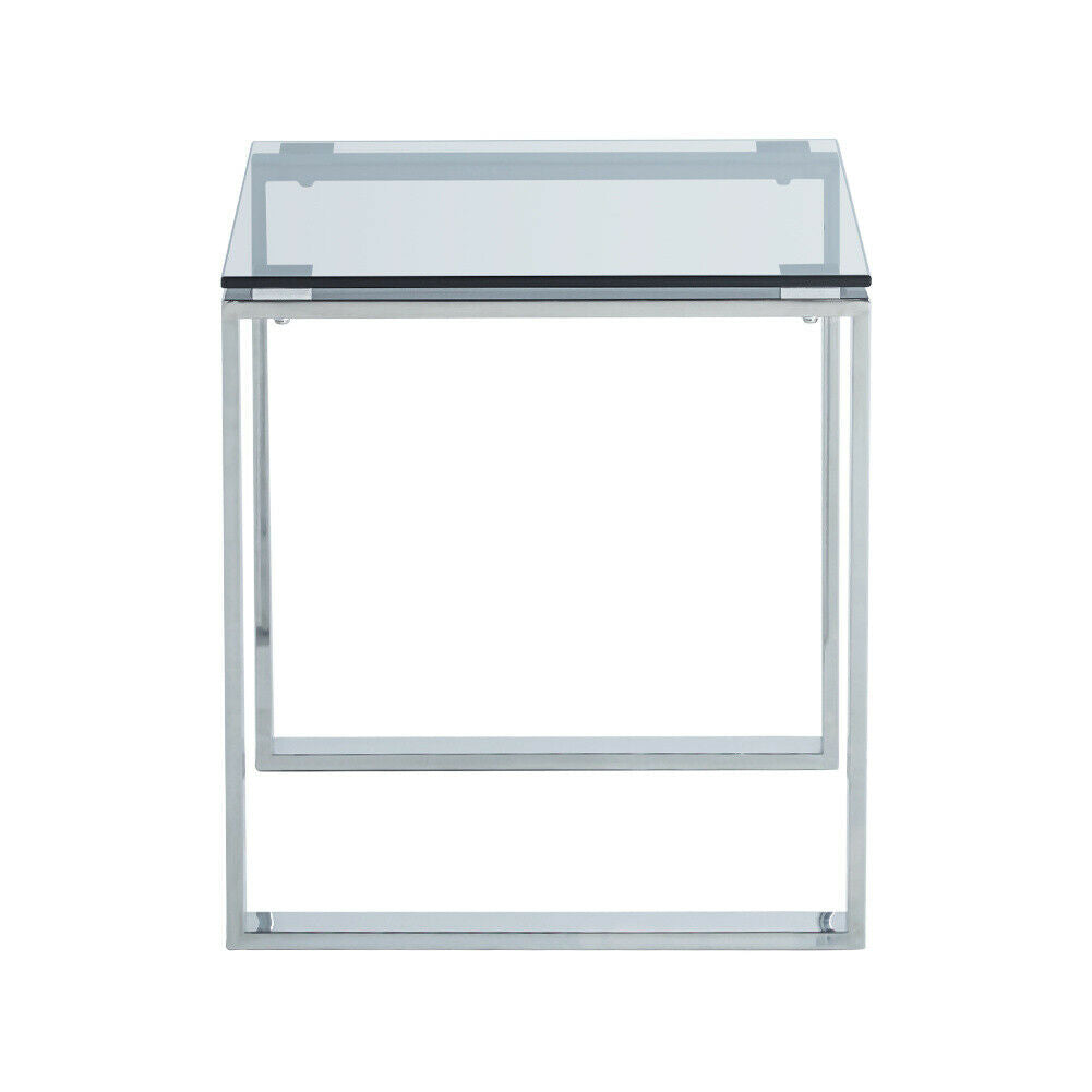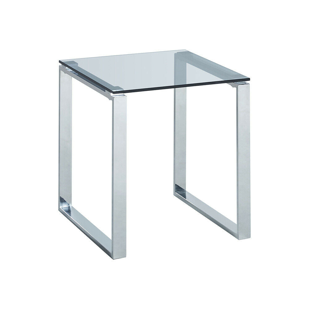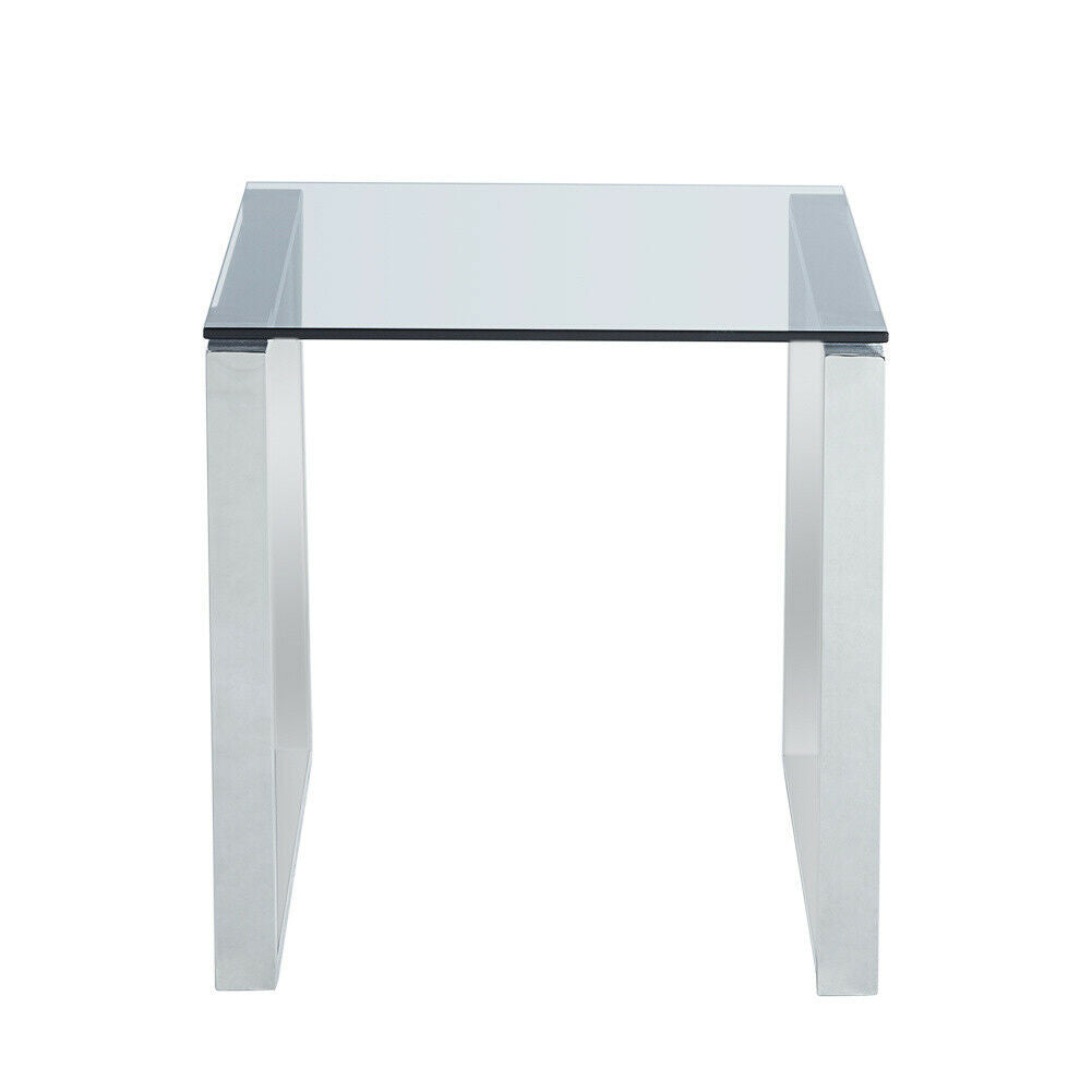 Square Modern Chrome Metal and Tempered Glass Living Room Side End Table