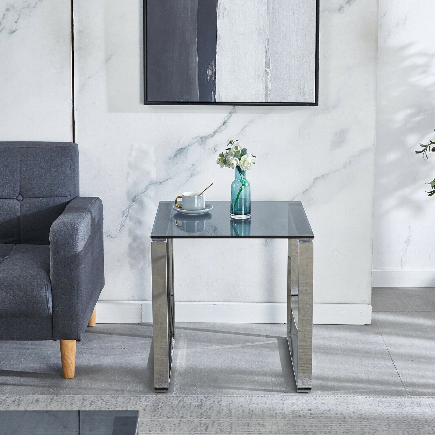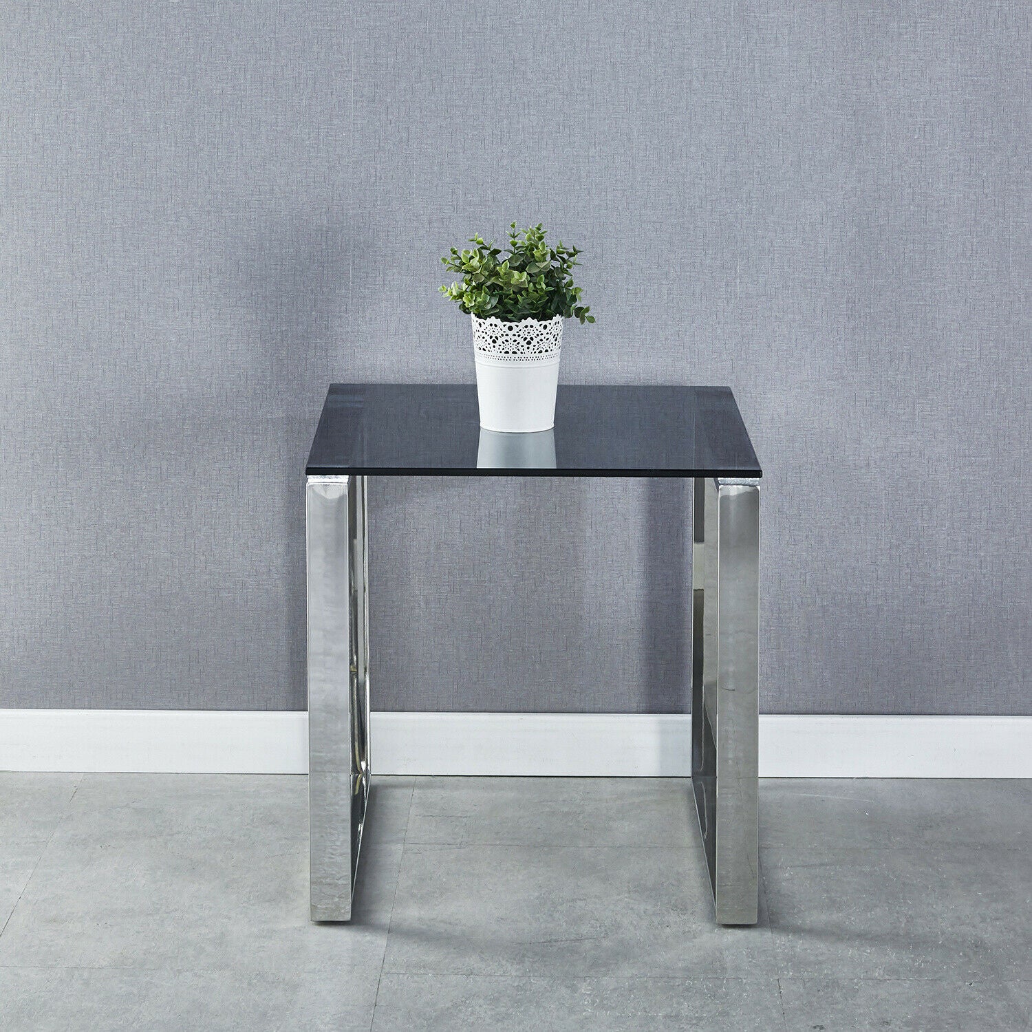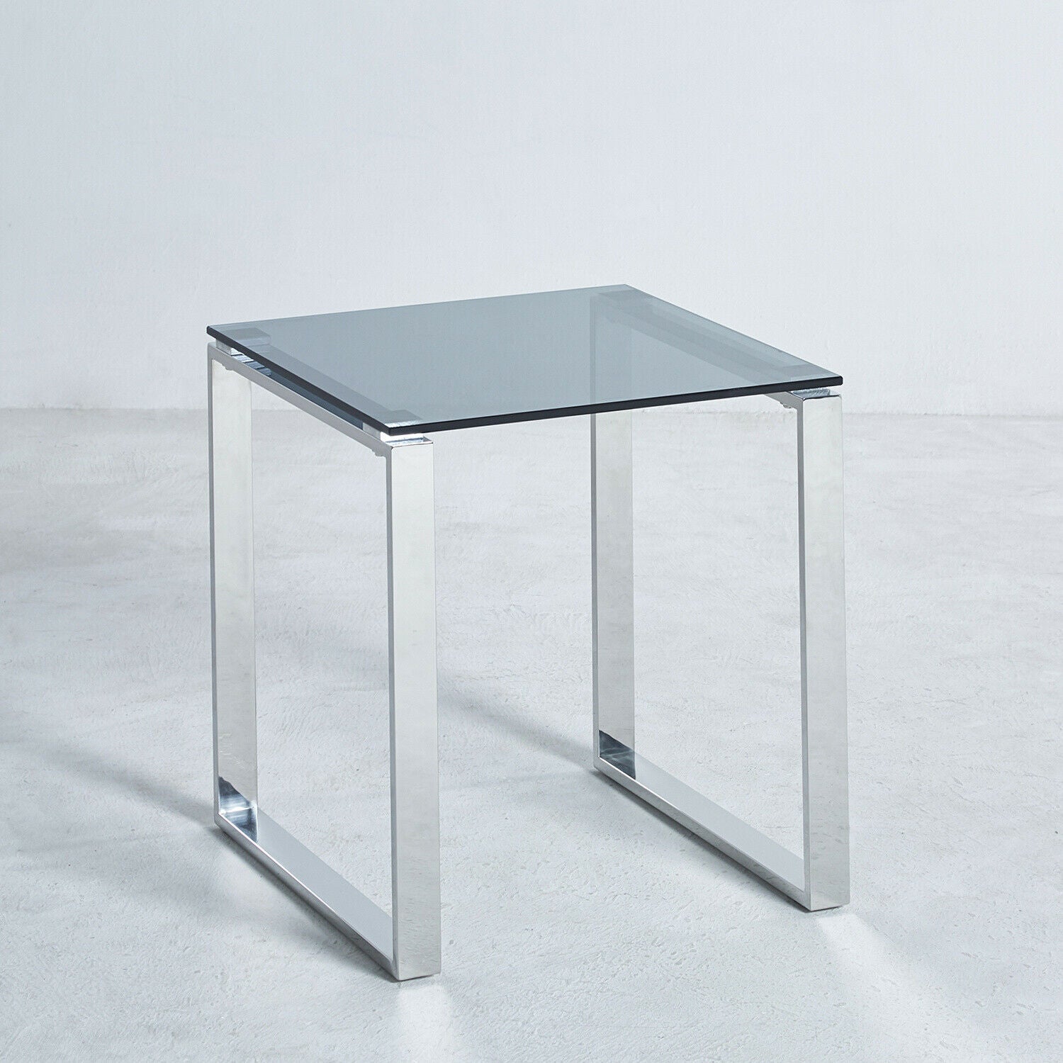 Square Modern Chrome Metal and Tempered Glass Living Room Side End Table