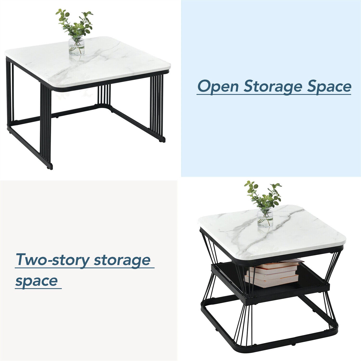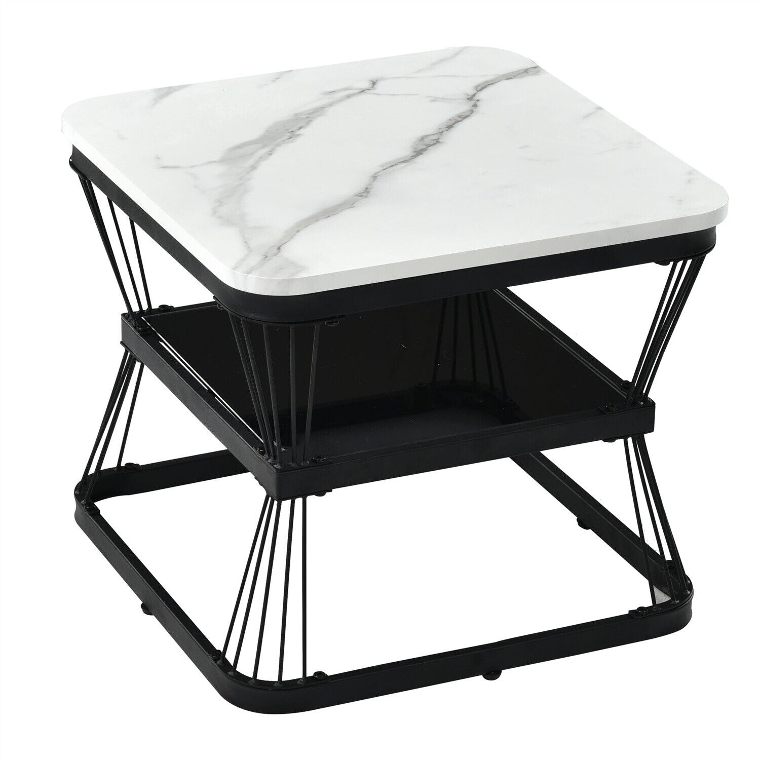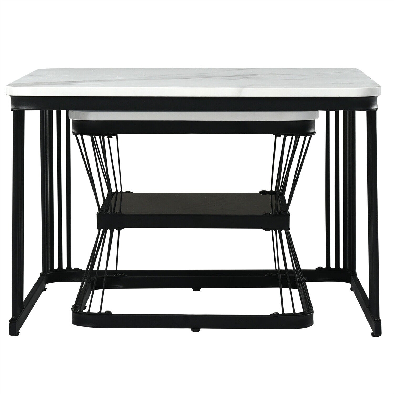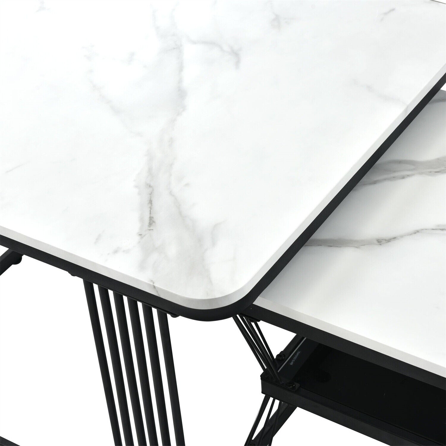 Square Nesting Coffee Table Metal Stacking Side Tables Set Marble-Look White
