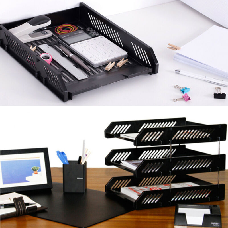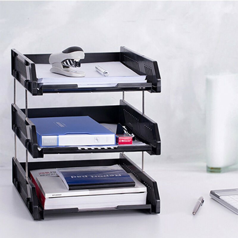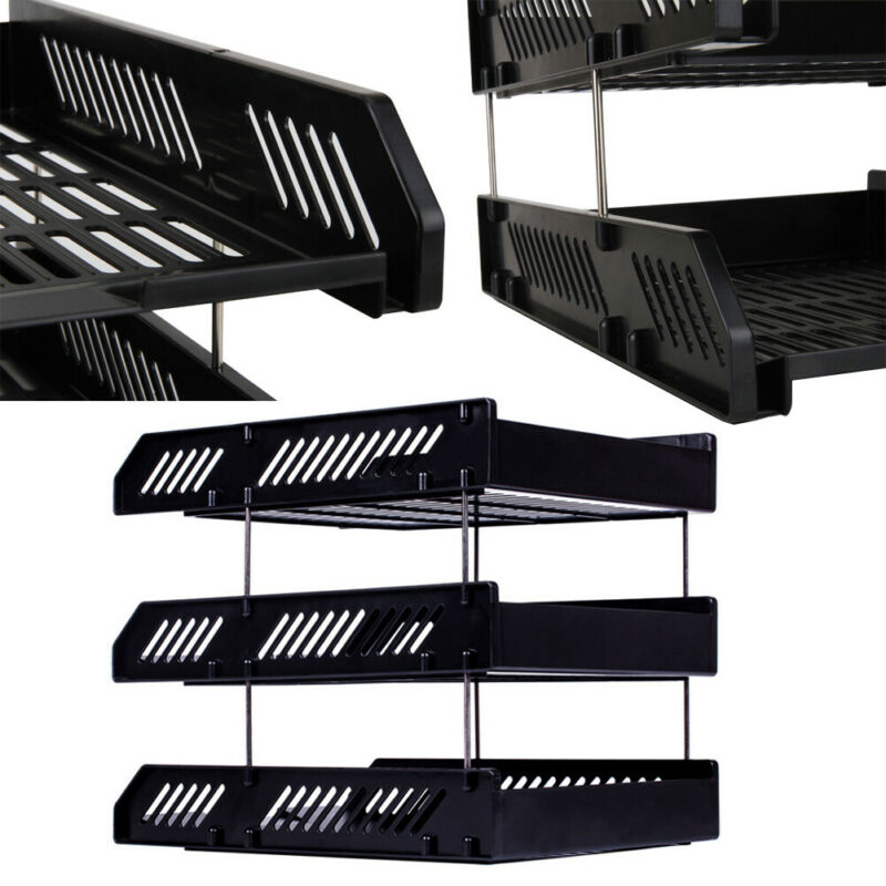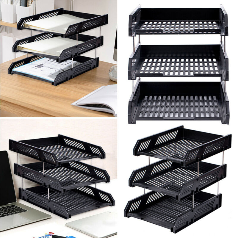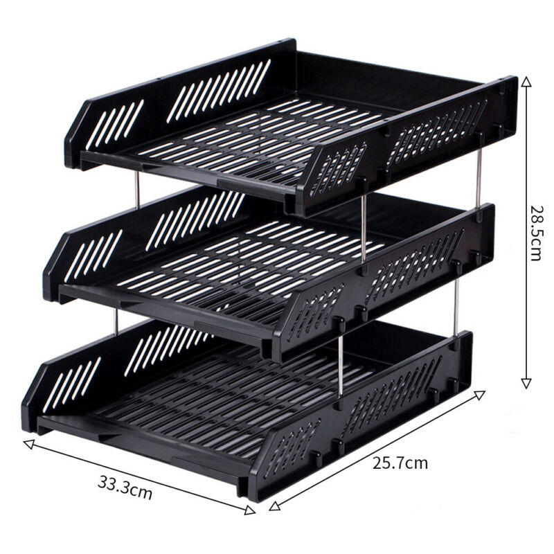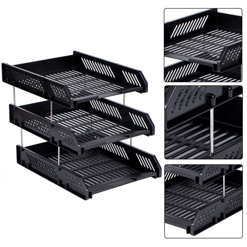 Stackable 3 Tier Office Filing Trays A4 Document Desk Riser Letter Paper Storage