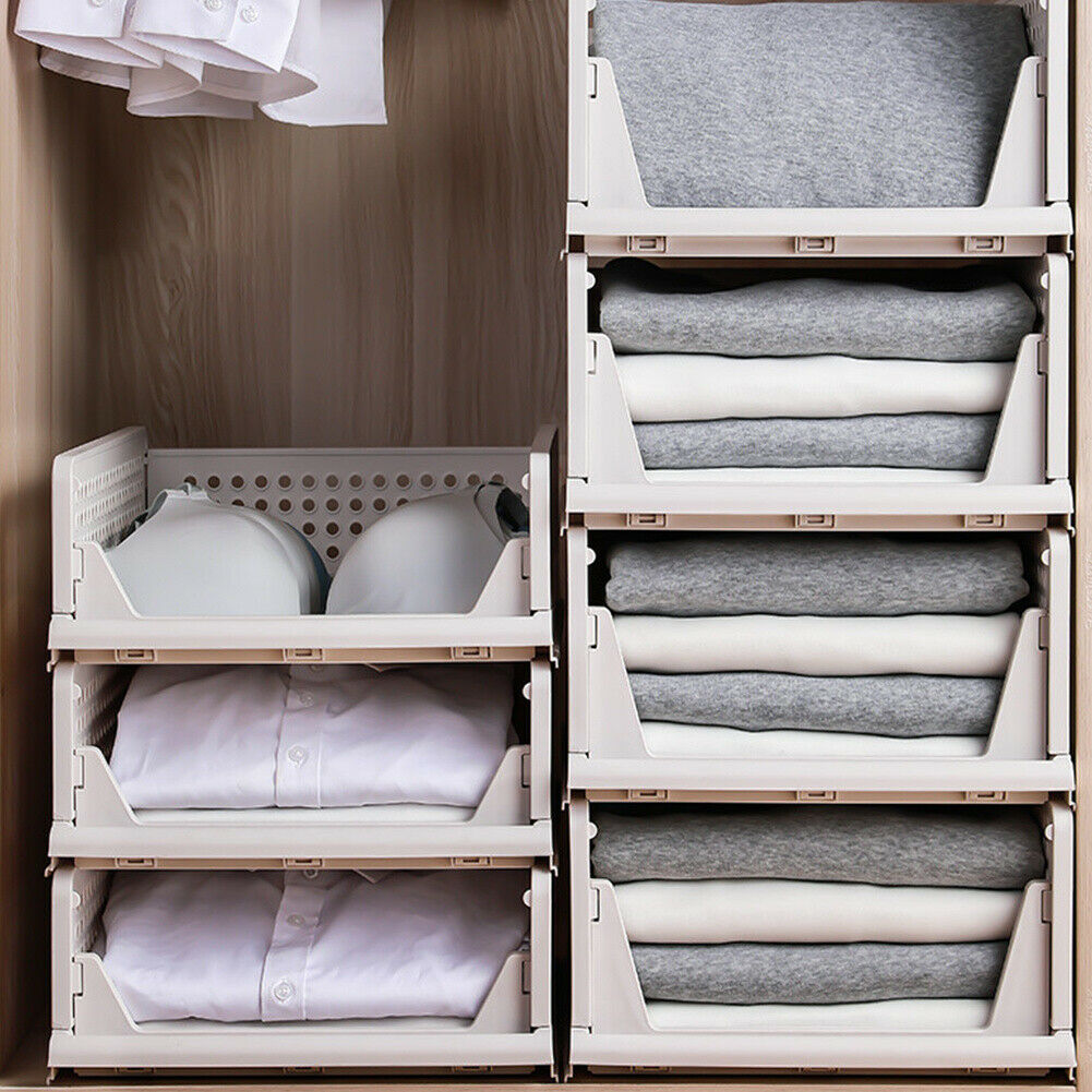 Stackable Clothes Storage Drawer Basket Plastic Wardrobe Closet Organizer Rack