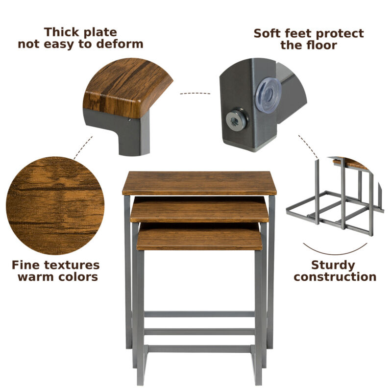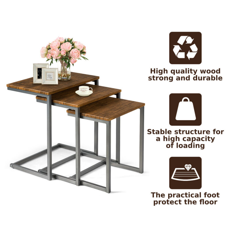 Stackable Nesting Tables Set of 3 Industrial Coffee Snack End Table C-Shaped