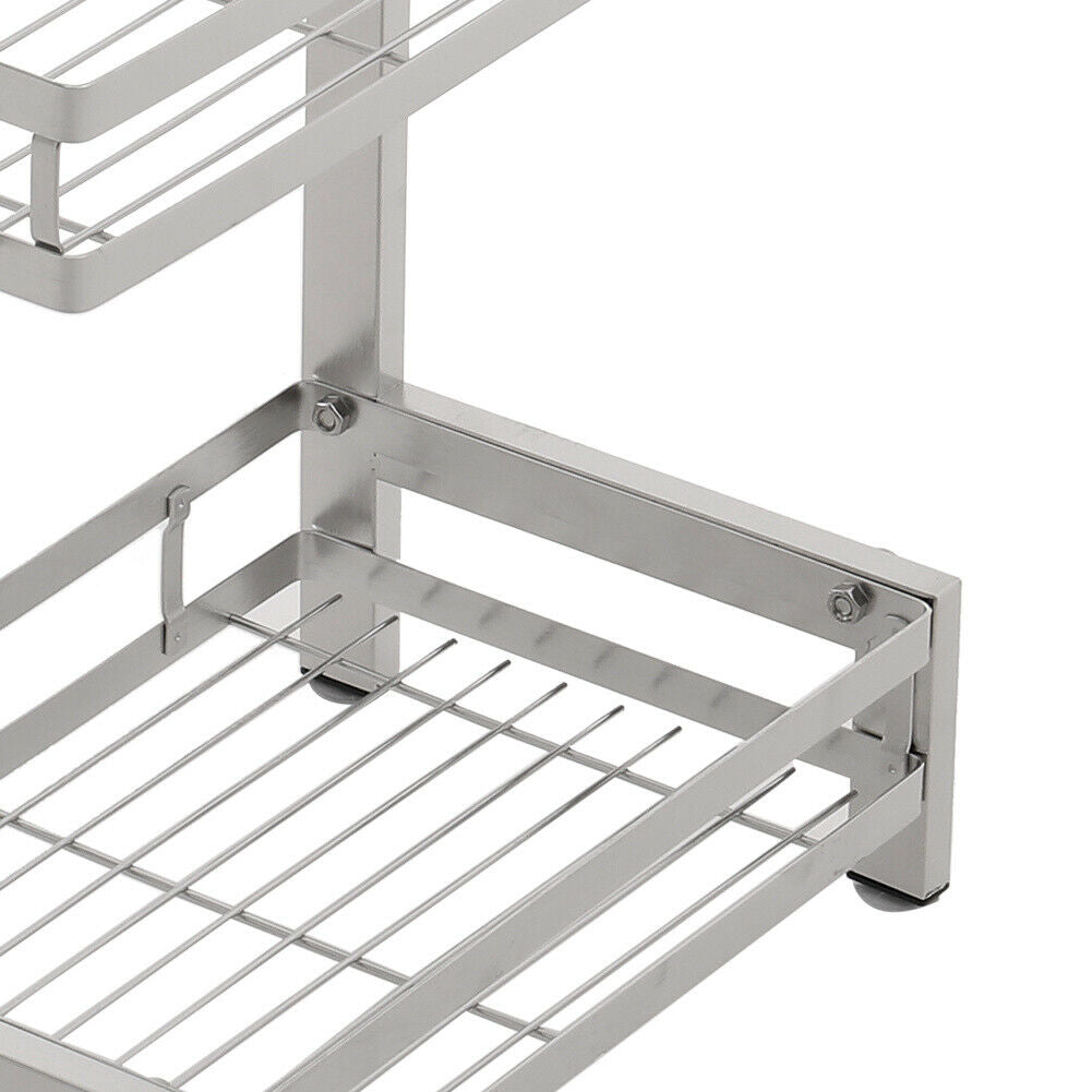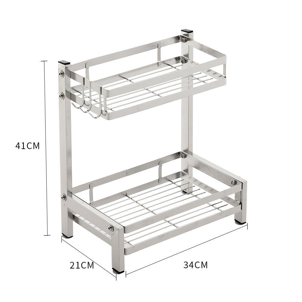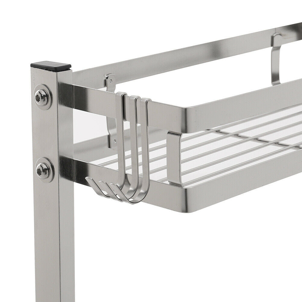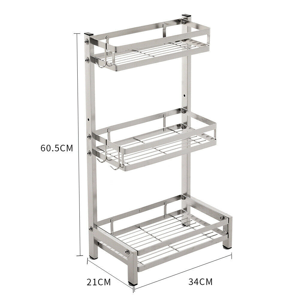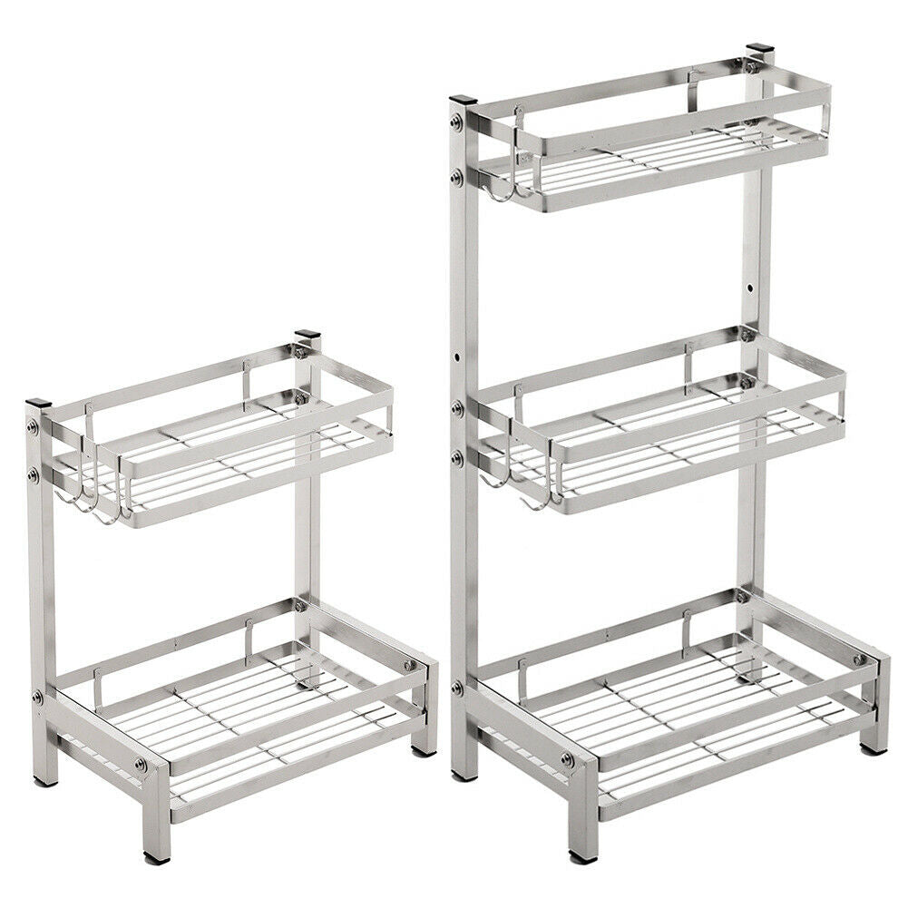 Stainless Steel 2/3 Tiers Jar Spice Organizer Rack Counter Storage Shelf w/ Hook