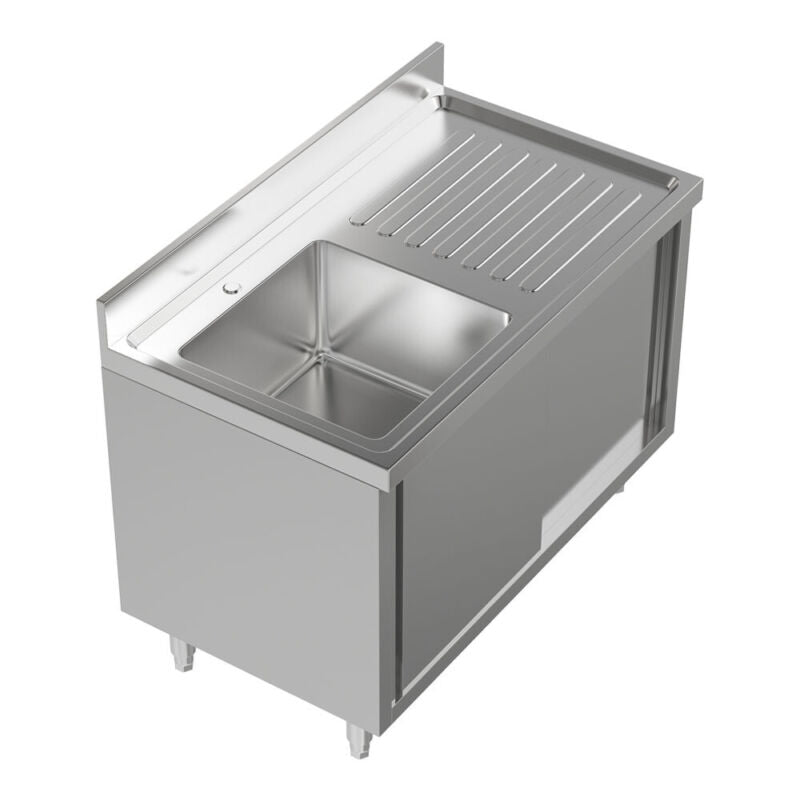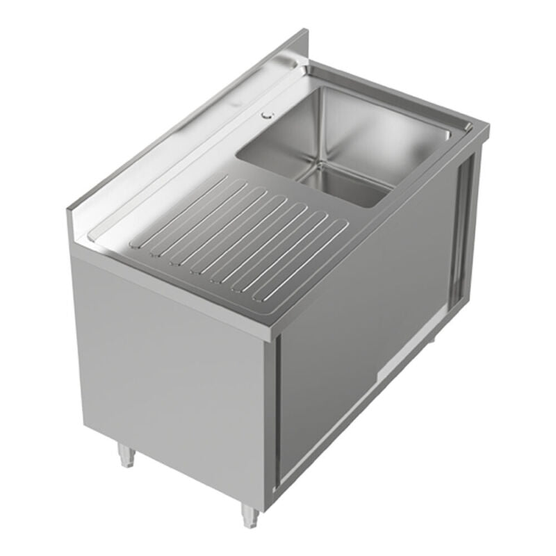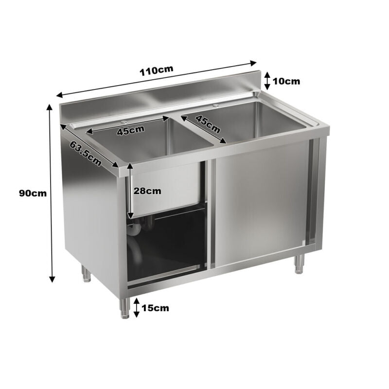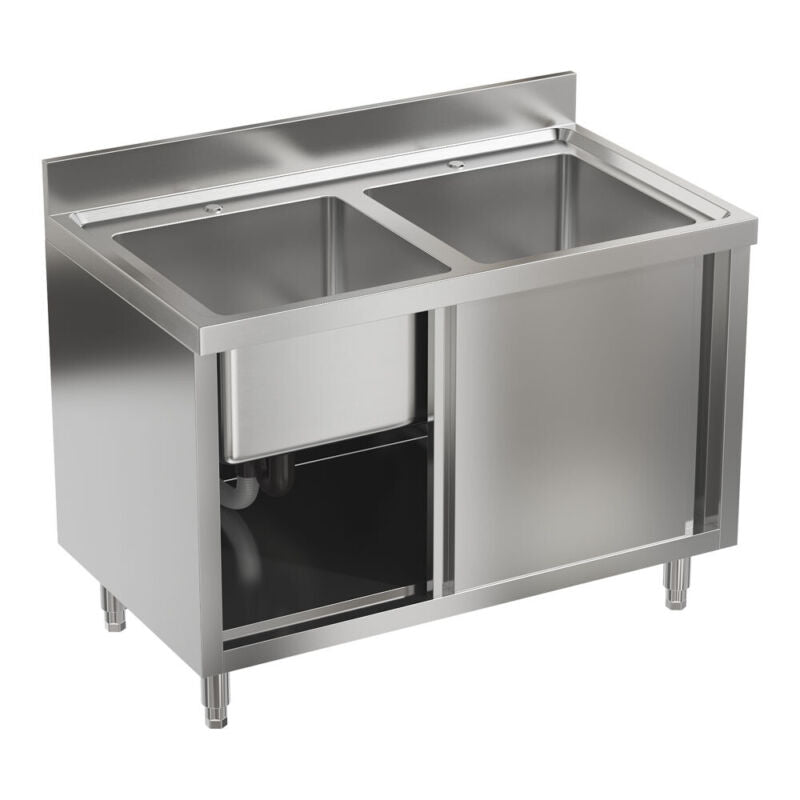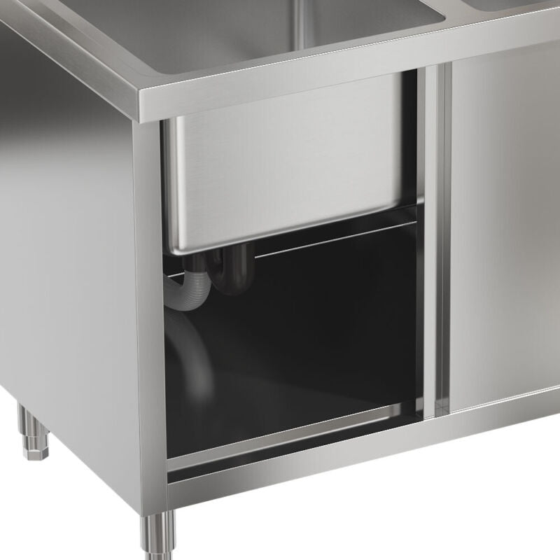 Stainless Steel Commercial Kitchen Sink Single/Double Bowl Storage Cupboard