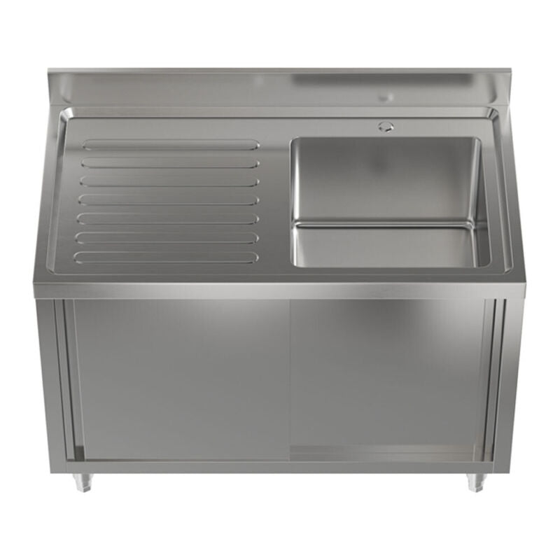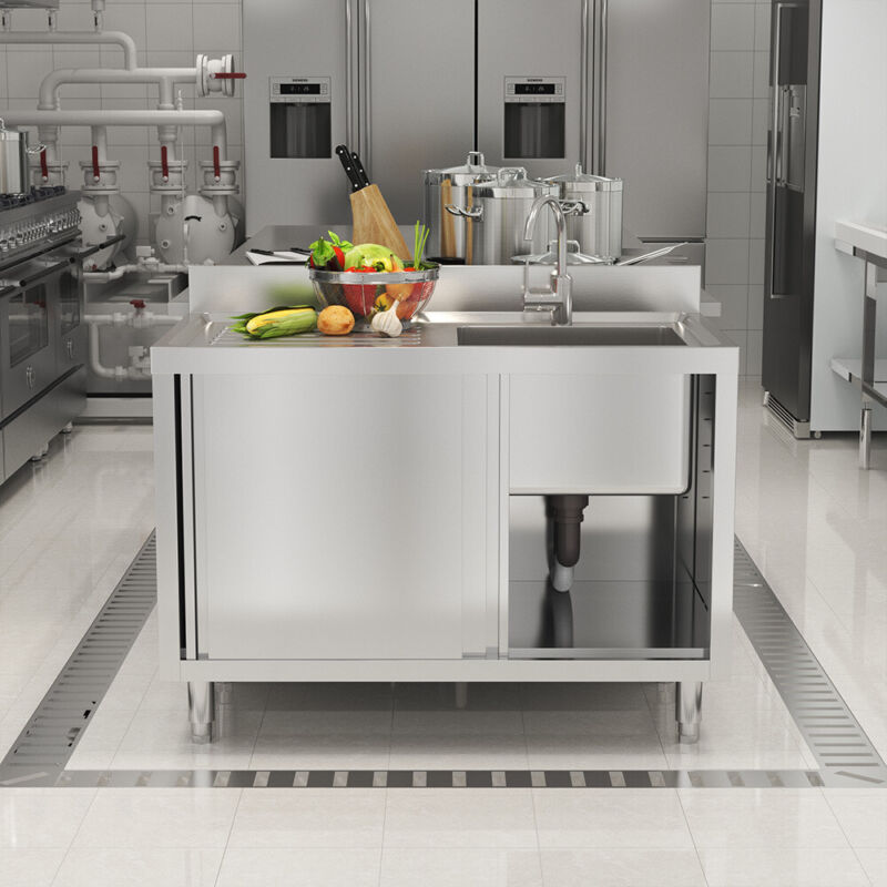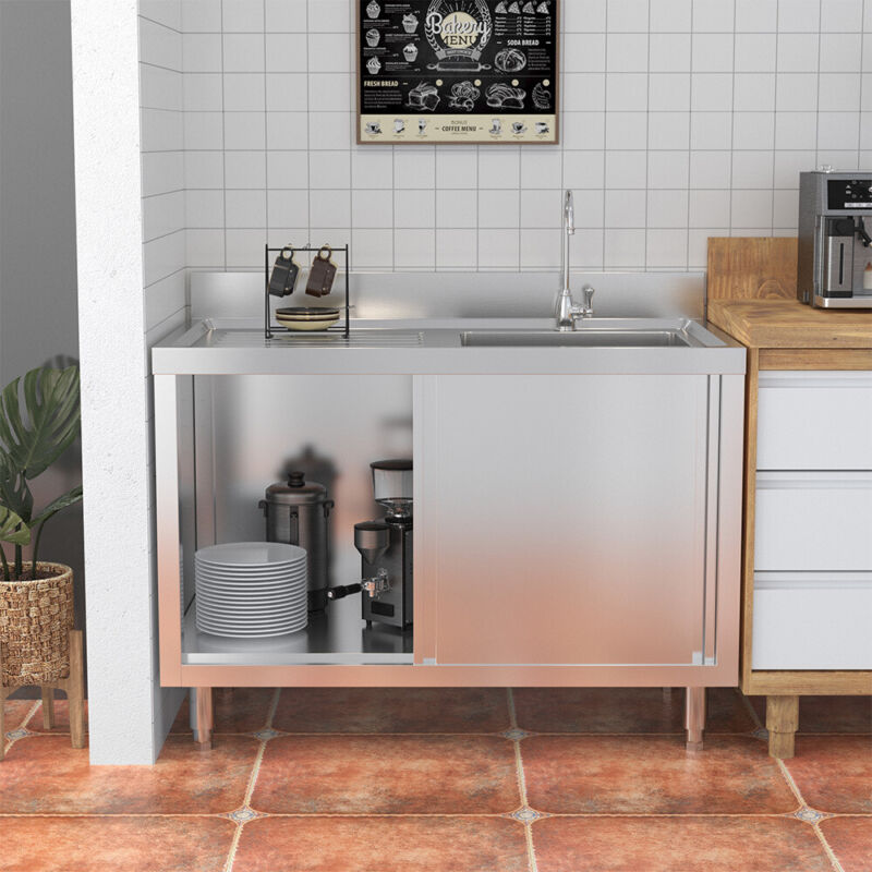 Stainless Steel Commercial Kitchen Sink Storage Cabinet 1.0 Bowl & LHD Platform