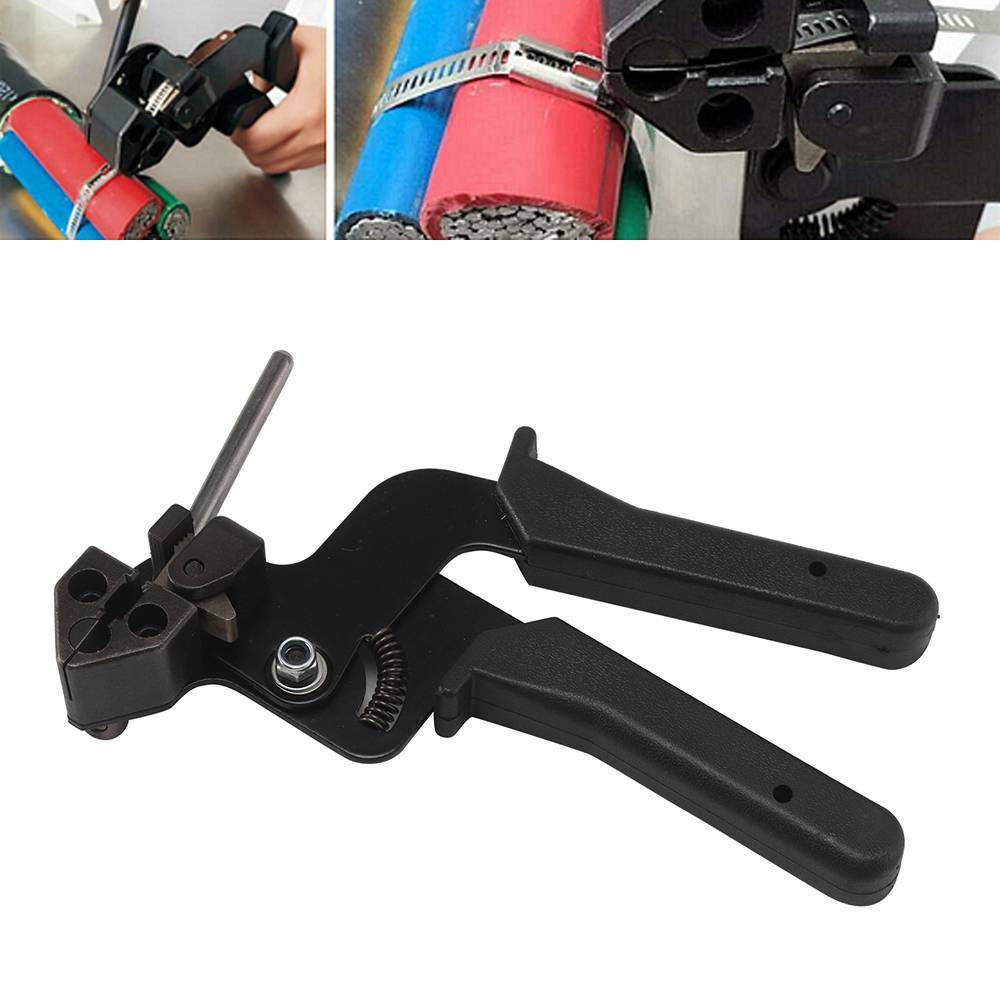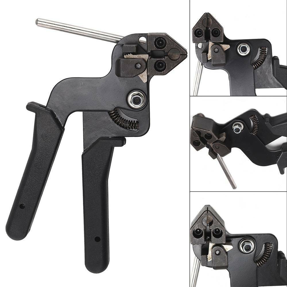 Stainless Steel Crimper Tensioner Cutter Tool Metal Cable Tie Fasten Gun Pliers