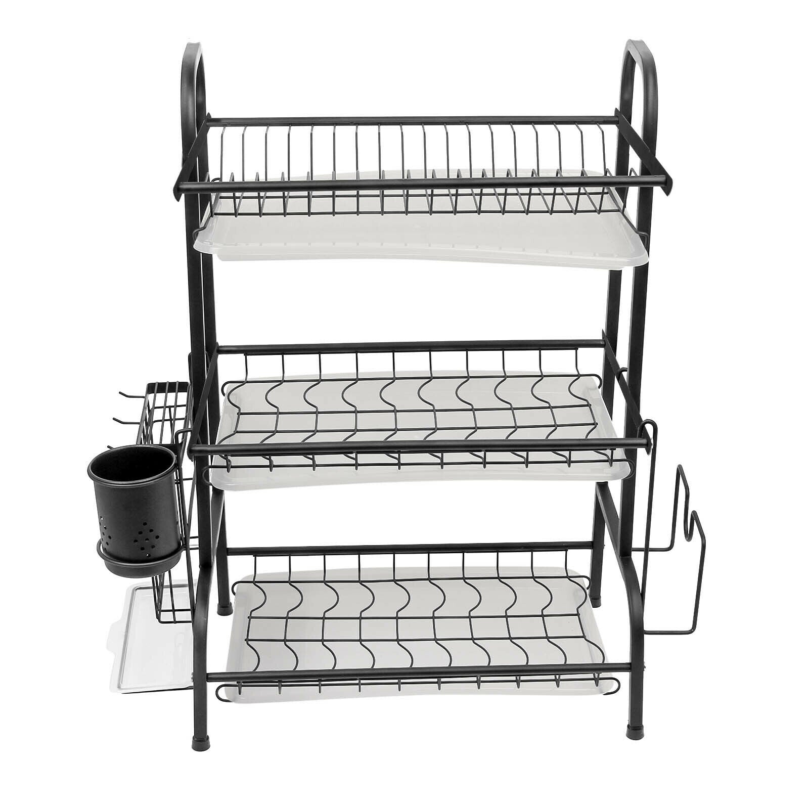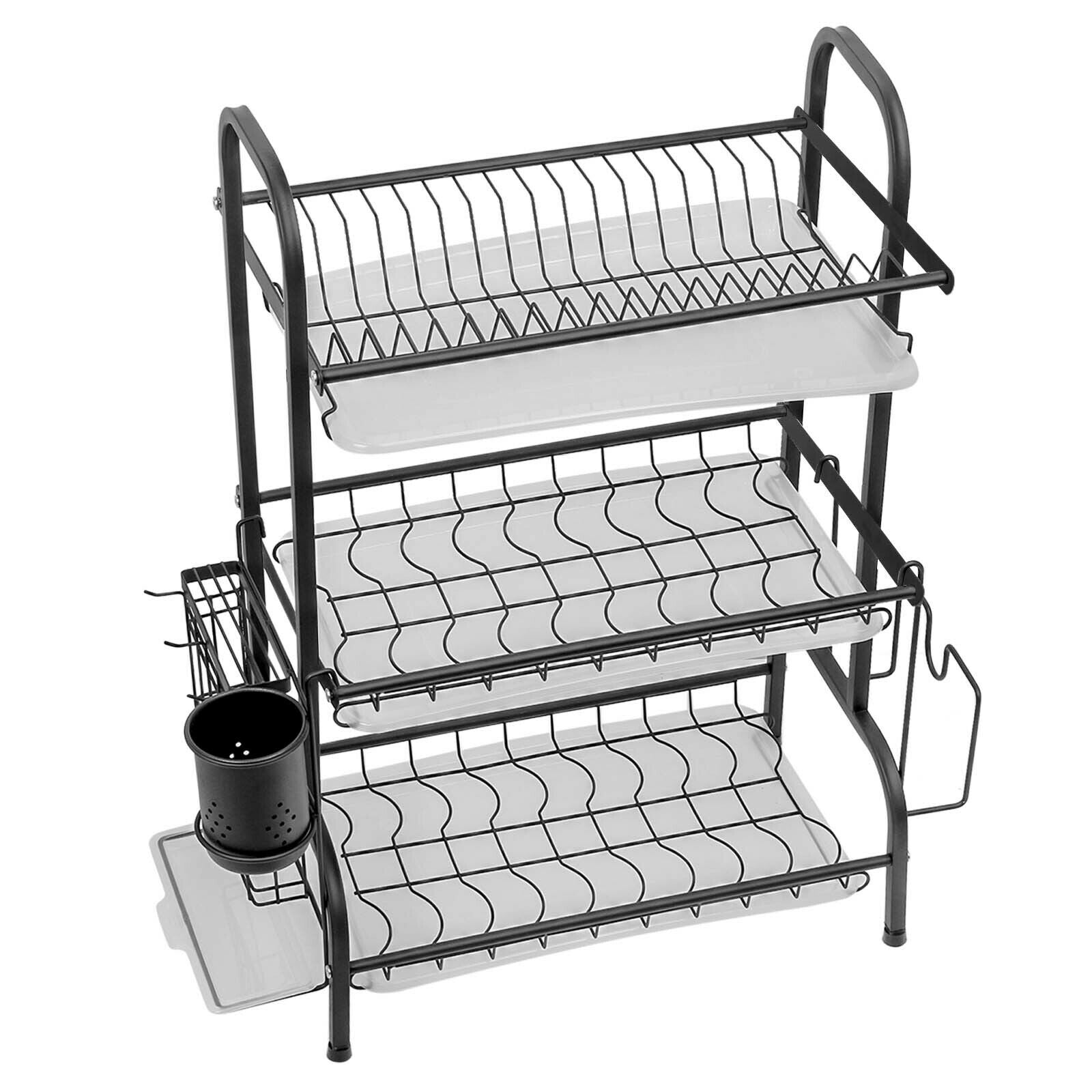 Stainless Steel Dish Drainer 3 Tier Bowls Wash Up Holder Drying Basket Cups Rack