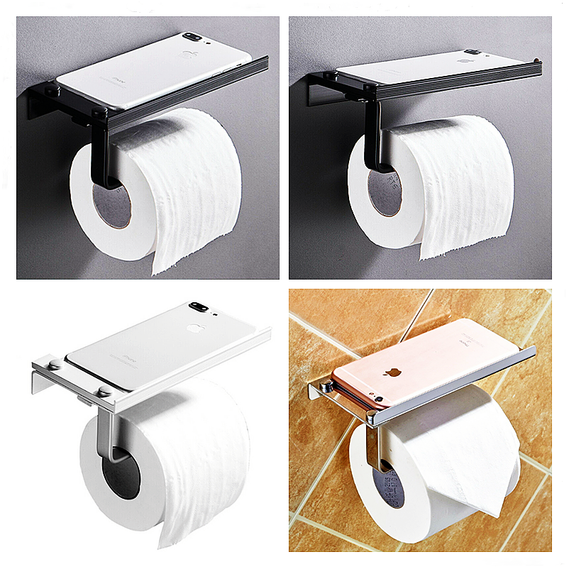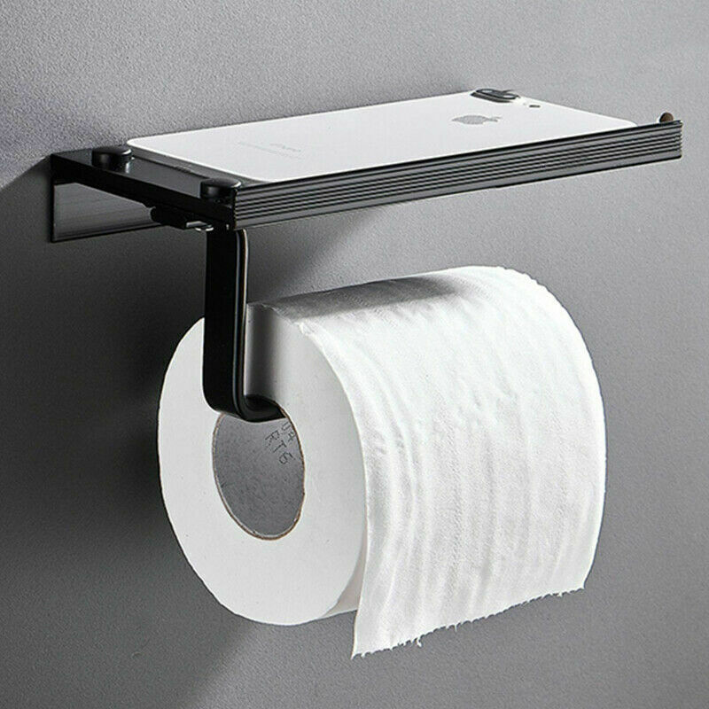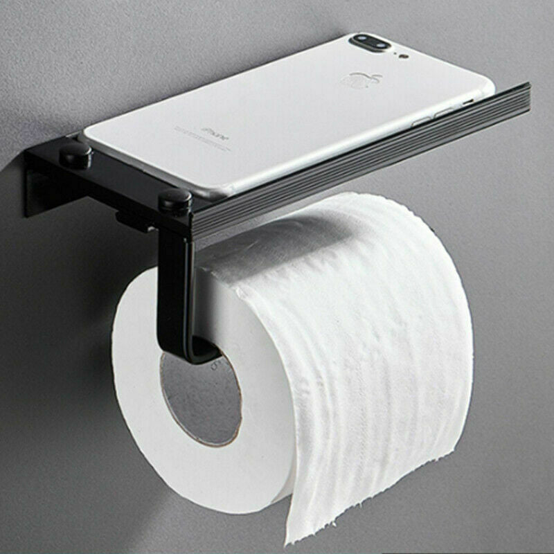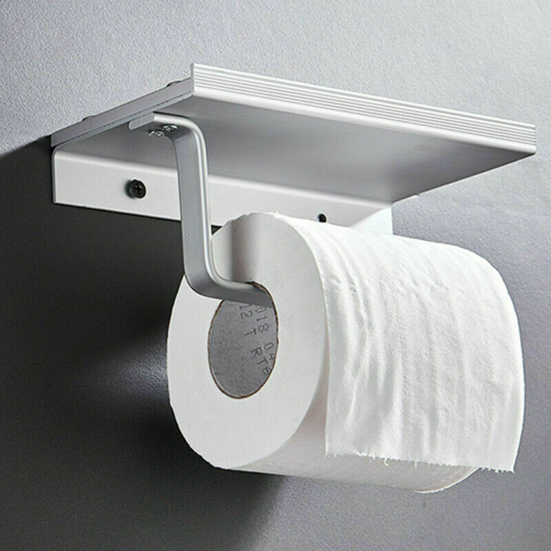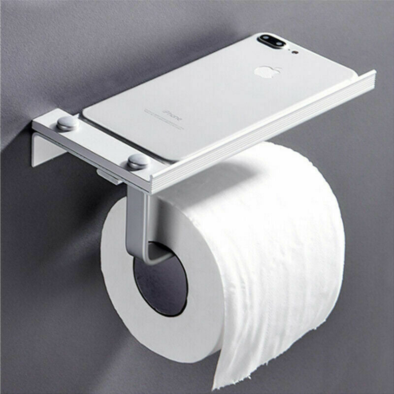 Stainless Steel Toilet Paper Roll Holder w/ Phone Storage Shelf Wall Mounted UK