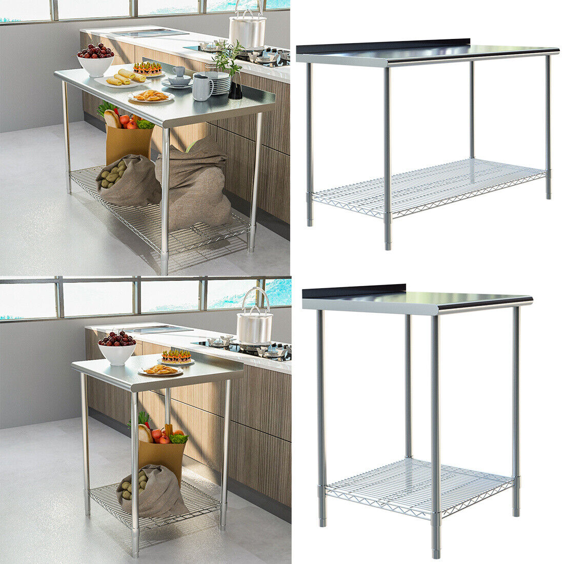 Stainless Steel Work Bench Commercial Catering Table Food Prep Backsplash 2-6ft