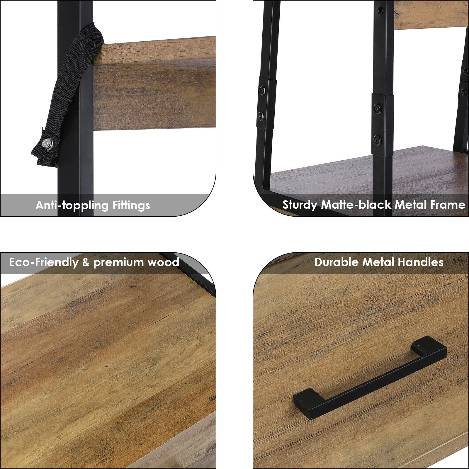 Standing Bookcase with Shelves and Drawers Ladder Shelf Made of Wood Metal Frame