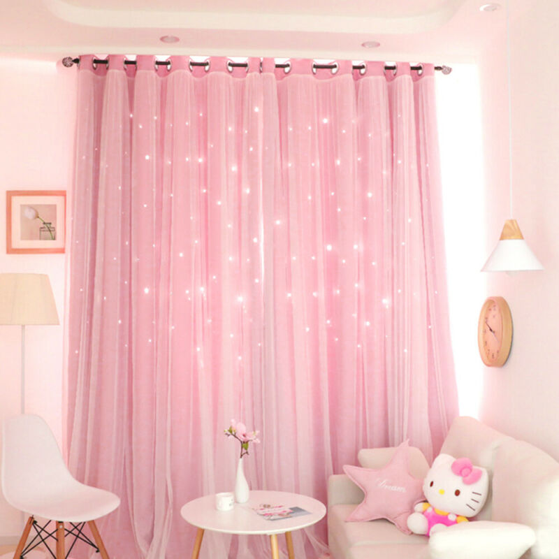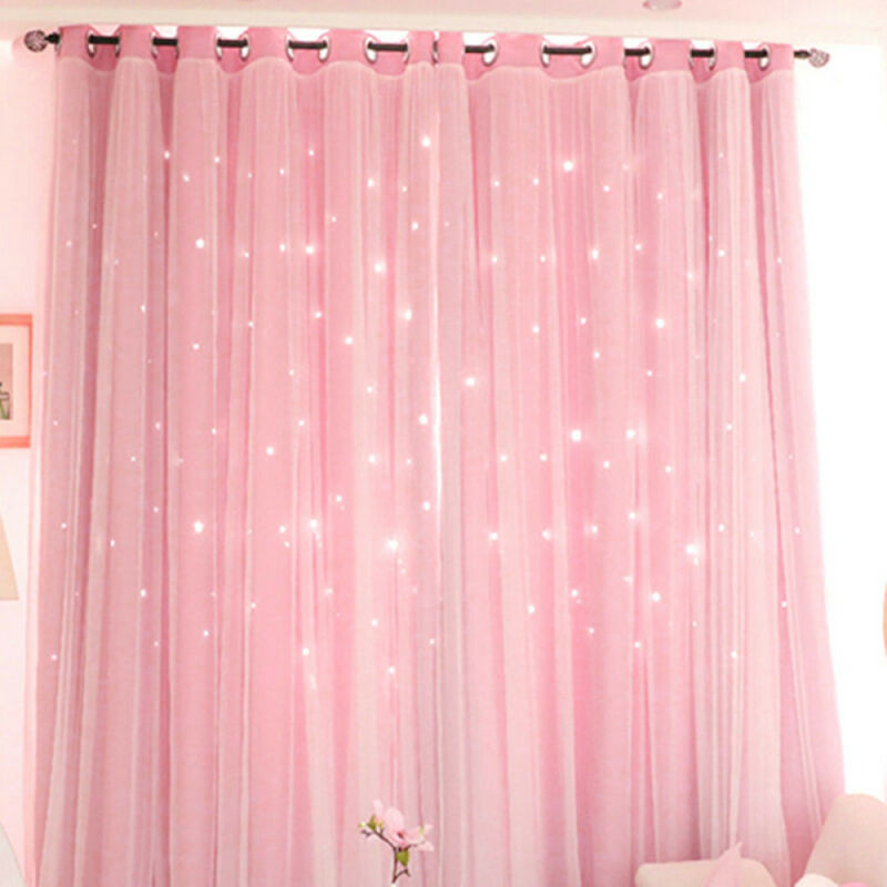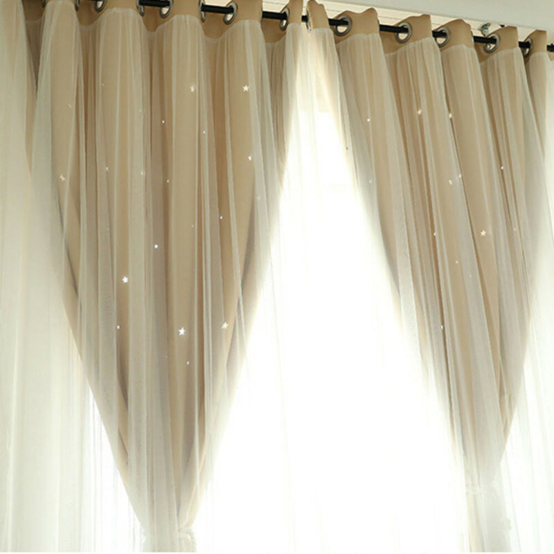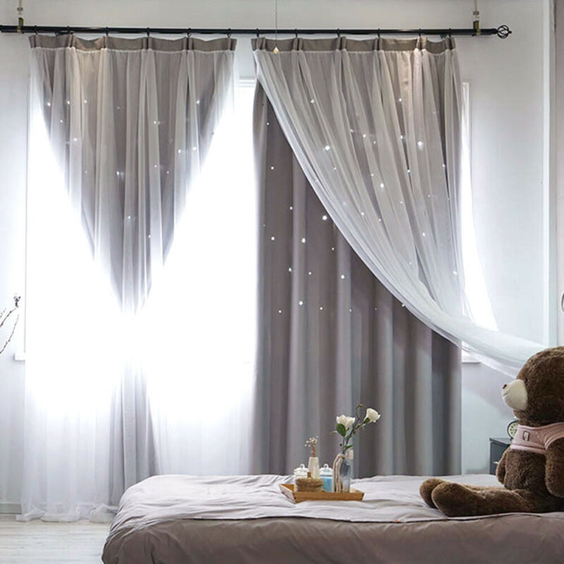 Star Blackout Window Curtains Hollow Thermal Insulated Home Bedroom Living Room